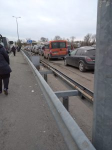 La fila di mezzi, lunga chilometri, verso il confine con la Polonia