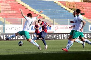 IL MATCH. Nel primo tempo, dopo venti minuti di equilibrio la prima occasione da goal arriva dai piedi di Carriero con un rasoterra che lambisce il palo alla destra di Chiorra. Dieci minuti dopo è Plescia a rendersi pericoloso non capitalizzando una grande azione in area orchestrata da Kanoute. Al minuto 39 ospiti vicinissimi a sbloccare la partita con Rizzo il cui tiro centra la traversa. Dagli sviluppi della stessa azione, Ferrara rischia l’autogol costringendo al salvataggio il portiere rossoblu.