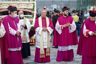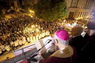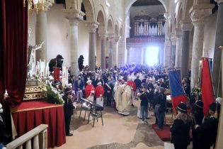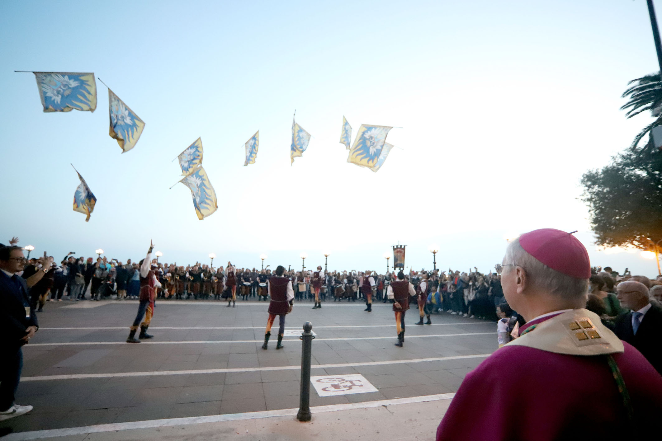 Amici, stimate autorità, fedeli tutti, facciamo la sosta della nostra bella processione per ricevere la benedizione apostolica ed immergerci nel dono dell’indulgenza plenaria che altro non è che il tesoro di Dio posto nelle mani della Chiesa perché possiamo avere un surplus di misericordia così che, carichi della fiducia del Padre, possiamo riprendere con vigore il nostro cammino, più capaci di compiere il bene.