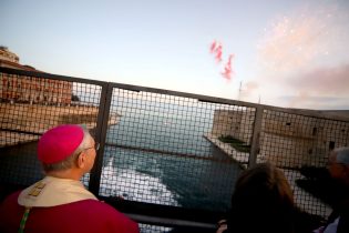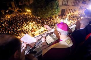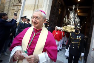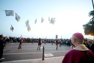 San Cataldo 2022 – Il saluto alla città dell’arcivescovo Filippo Santoro dal balcone della chiesa del Carmine