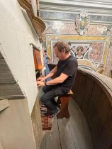 La sua attenzione è poi stata attratta dall’organo monumentale seicentesco, restaurato di recente, ed ha accettato con entusiasmo l’invito di don Emanuele a provarlo.