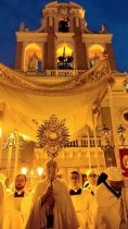 Ma oggi stiamo vivendo molto di più: la nostra identità, il nostro essere Chiesa, la nostra fonte e il nostro culmine, il nostro nutrimento, la nostra speranza, la nostra gioia, la nostra salvezza, ha camminato con noi! Adoriamo e abbiamo portato con le nostre mani e per le nostre strade Gesù Cristo Figlio di Dio, Figlio di Maria, che per la nostra fede crediamo vivo e presente nelle specie del pane e del vino.