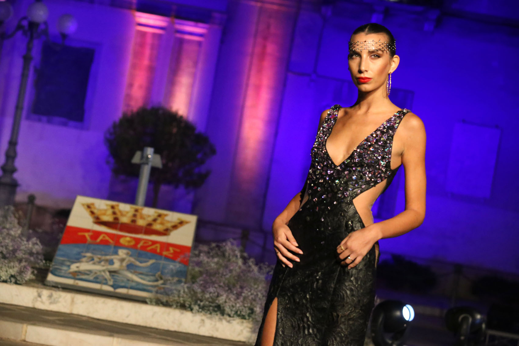 Come ninfe sgorgate dal mare, dalla nebbia e dal grigiore, allo stesso facevano ritorno: lo fissavano senza vederlo arrestando il loro lento, regale incedere. Così le modelle che uscivano da Palazzo di città hanno dato vita ad uno spettacolo inedito. Che certamente andrà ripetuto: il successo della prima edizione di “Mediterranée – Taranto e la Dolce vita”, format dedicato alla Puglia, è frutto di una volontà condivisa. Quella di rilanciare l’immagine del capoluogo ionico, e il suo borgo, anche attraverso la moda. La kermesse ha tenuto insieme arte storia tradizioni. L’ultimo atto è andato in scena domenica sera, a beneficio di chi ha potuto assistere all’evento unico, suggestivo. Algide, come vuole il protocollo, svestite del sorriso, le modelle hanno sfilato sulla piazza prospiciente il Municipio. Il protagonista della serata è stata l’arte di Gianluca Saitto, che nella città dei due mari ha presentato 30 dei suoi capi d’alta moda appartenenti alla sua collezione “Couture in fieri” – lo stilista ha accettato l’invito di Angelo Labriola e Mario Rigo. Mezzora di sfilata incorniciata dalla narrazione di una terra che si vuole convertire. Il contributo dell’alta moda, allora, si fa prezioso, suggerendo la direzione. La Moda che insegue la perfezione richiede a Taranto uno sforzo maggiore: volare alto, e non accontentarsi di sopravvivere. La lezione sta inoltre nella ricerca della libertà come strumento di autodeterminazione. Perché, fortemente identitaria, la moda non può essere soggetta a giudizio o al pregiudizio. Deve stare in pace con se stesso, non curarsi d’altro, chi la segue. Deve valorizzare la persona e l’ambiente in cui vive.