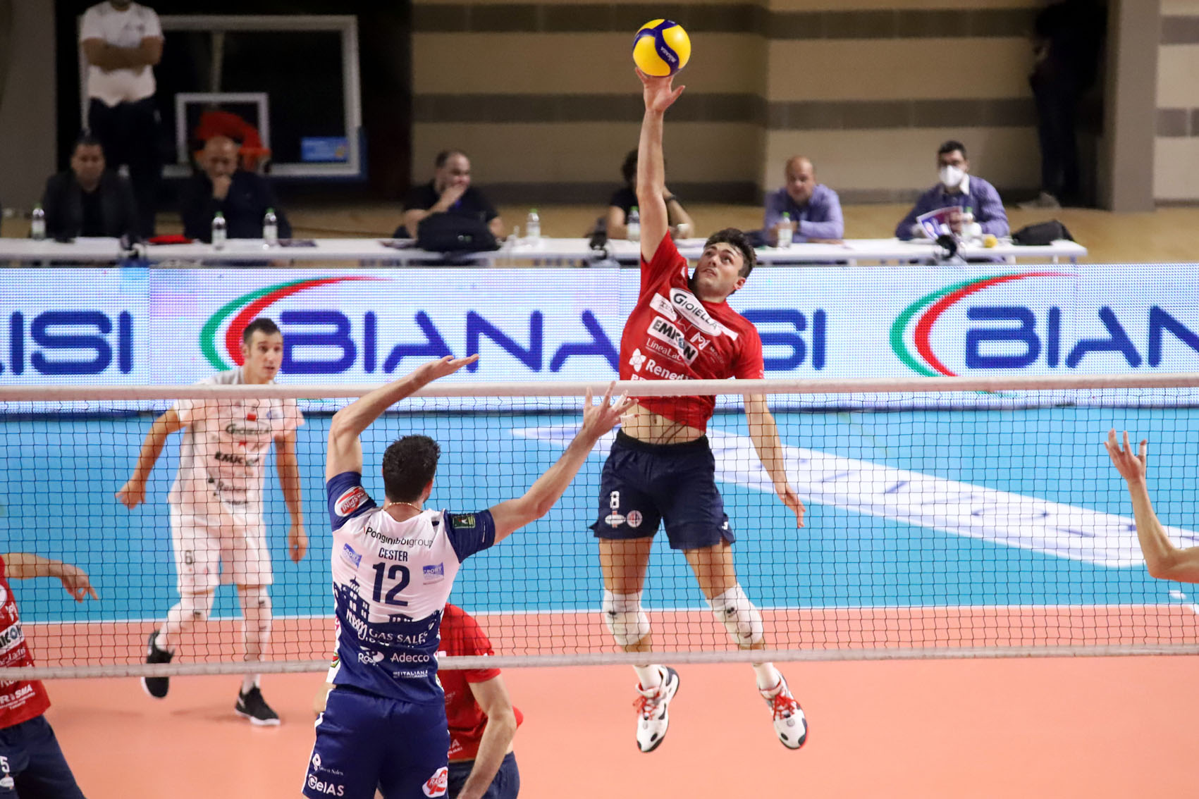 Scesi in campo scarichi, i rossoblu hanno perso il primo set malamente. Sono cresciuti nel corso dell’incontro, nel secondo parziale, e soprattutto nel terzo, quando erano in vantaggio di quattro lunghezze (14-10). Gli ospiti però, trascinati da Leal (top scorer con 16 punti) e da Lucarelli, hanno fatto valere la legge del più forte e non concesso niente. Con un pizzico di fortuna in più, che è mancata (anche quella), si poteva portare a casa il terzo set, e magari riaprire il match clamorosamente. I tifosi che hanno riempito gli spalti del PalaMazzola hanno apprezzato quella reazione d’orgoglio applaudendo tutti gli atleti a fine incontro. L’auspicio è che la voglia di lottare su ogni palla prevalga sempre.