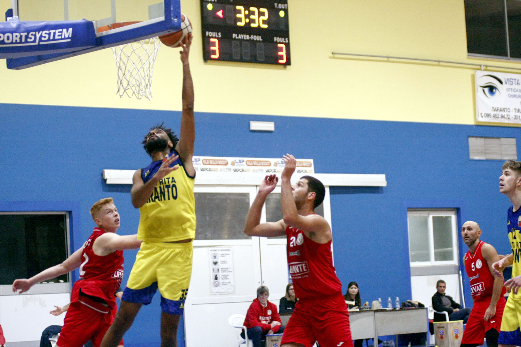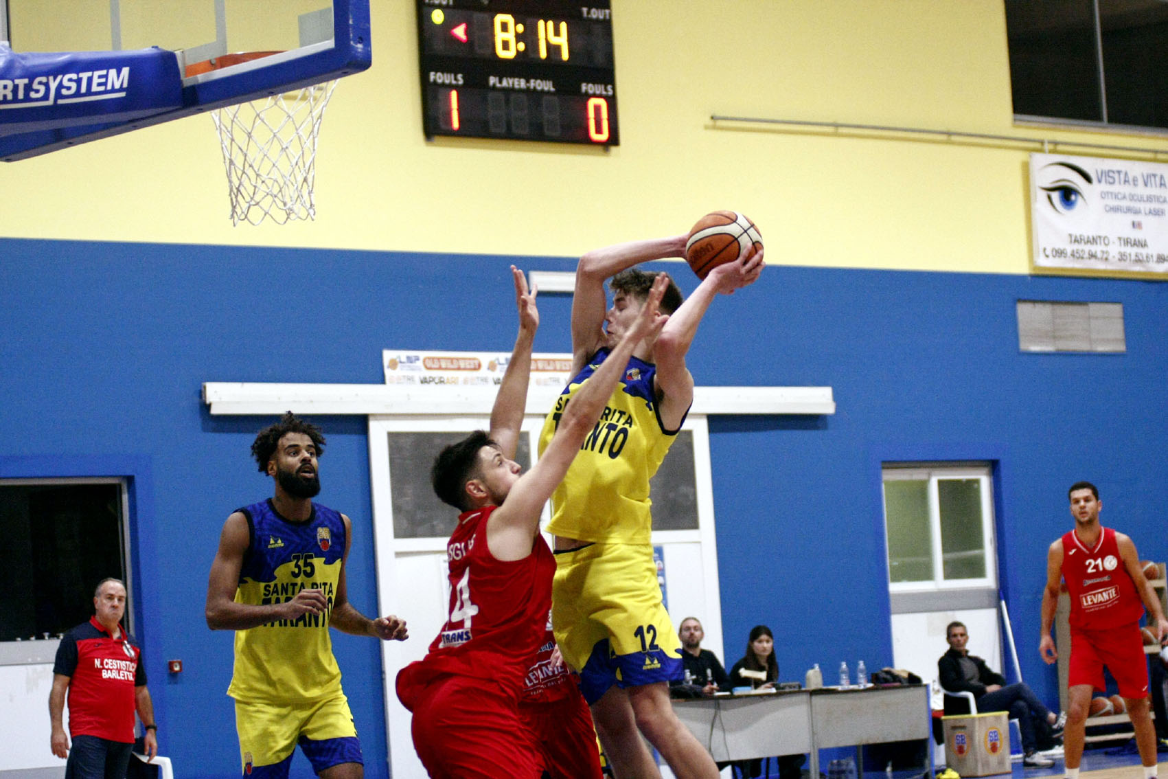 Partenza sprint degli ionici (7-0), accorti in difesa e rapidi nelle ripartenze. Sul 11-2 arriva il time out ospite. La Cestistica Barletta è in partita ma alquanto imprecisa. Il primo quarto si chiude sul 23-16. Poi sale il livello di agonismo. Arriva l’aggancio e il sorpasso della formazione di coach Ceci (29-32). La partita è combattuta. Ma con un canestro all’ultimo secondo è Taranto a chiudere in vantaggio il primo tempo (42-41). Nella ripresa continua l’equilibrio con gli ospiti bravi a stroncare sul nascere i tentativi di fuga della Santa Rita. Si chiude sul 63-62. La palla si fa scottante nell’ultimo quarto di gioco. A tre minuti dal termine arriva l’allungo degli ionici: 81-74. Chiusura con il massimo vantaggio raggiunto durante l’incontro.