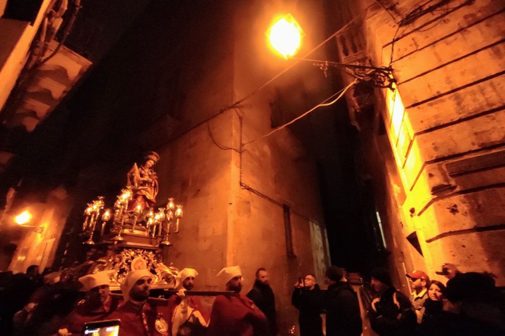 Alle 5.30, nella basilica cattedrale di San Cataldo, don Emanuele Ferro e don Francesco Fanelli, parroco e vice parroco delle chiese dell’Isola, hanno accolto, sulle note delle pastorali tarantine, le due bande venute ad omaggiare la Santa patrona: la Grande orchestra di fiati “Santa Cecilia” e il Gran complesso bandistico “Paisiello”, guidate rispettivamente dai maestri Giuseppe Gregucci e Vincenzo Simonetti.