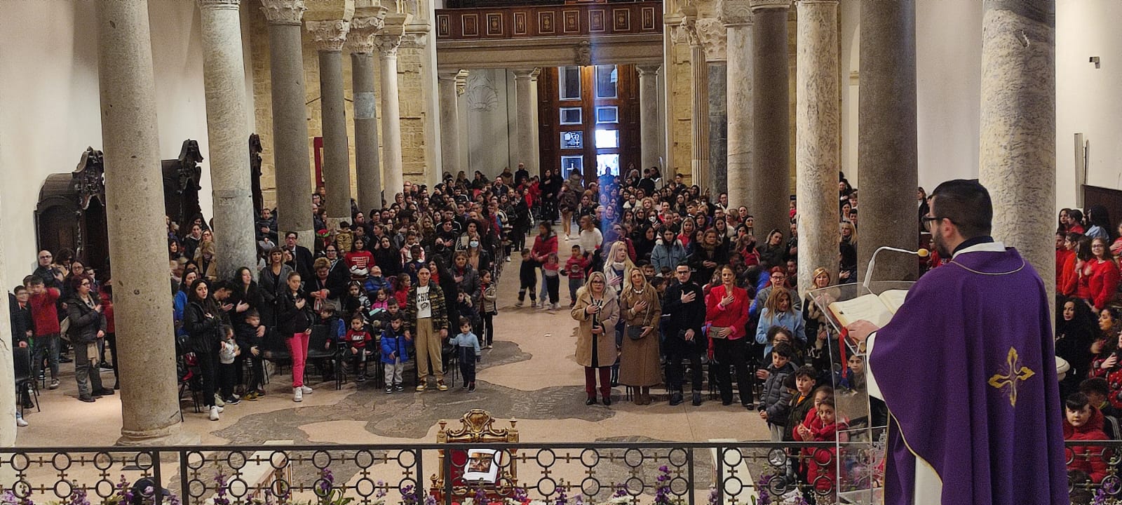 Don Alessandro Argentieri, parroco della chiesa degli Angeli Custodi dei Tamburi, ha celebrato questa mattina nella basilica cattedrale di San Cataldo la messa per il Santo Natale per l’istituto comprensivo Galileo Galilei dove egli stesso insegna.