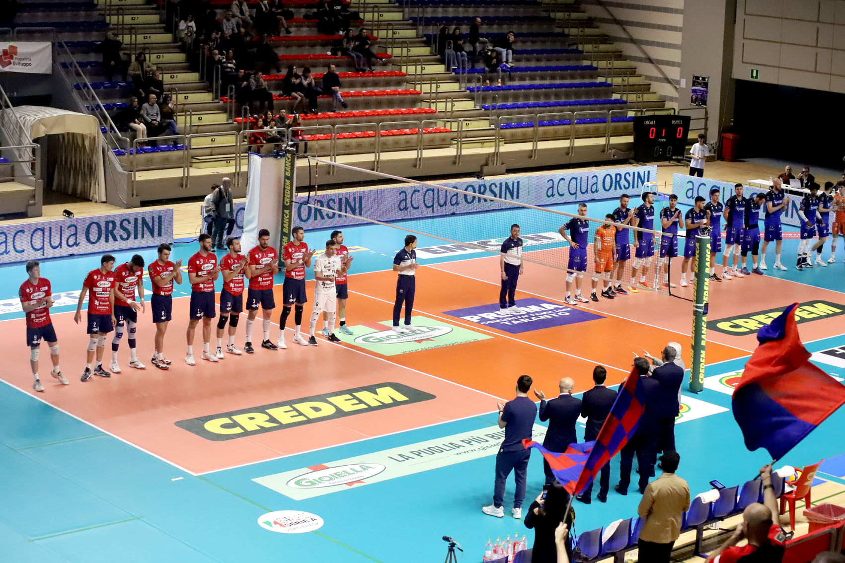 IL MATCH- Primo set caratterizzato da un’ottima partenza. Taranto sempre avanti nel punteggio, allunga al turno in battuta di Larizza, protagonista di battute flottanti che mettono in difficoltà la ricezione ospite. Il copione non cambia nel secondo parziale di gioco. La Prisma è sempre concentrata, determinata, efficace in ogni fondamentale, dal muro alla difesa. Si vedono scambi intensi e prolungati tra le due formazioni. Come quello chiuso sul 17-11 dalla schiacciata del sempre ottimo Tommaso Stefani. Cisterna di Latina cresce insieme a Sedlacek. Taranto contiene la reazione ospite e si aggiudica il set. Quel segnale spia porta all’accensione della macchina guidata da Fabio Soli: sono loro a condurre d’ora in poi costringendo la Prisma a ricorrere. Loro a spuntarla nelle fasi finali del terzo, quarto e quinto set, trascinati da Gutierrez Suarez Jose, votato come miglior giocatore del match.