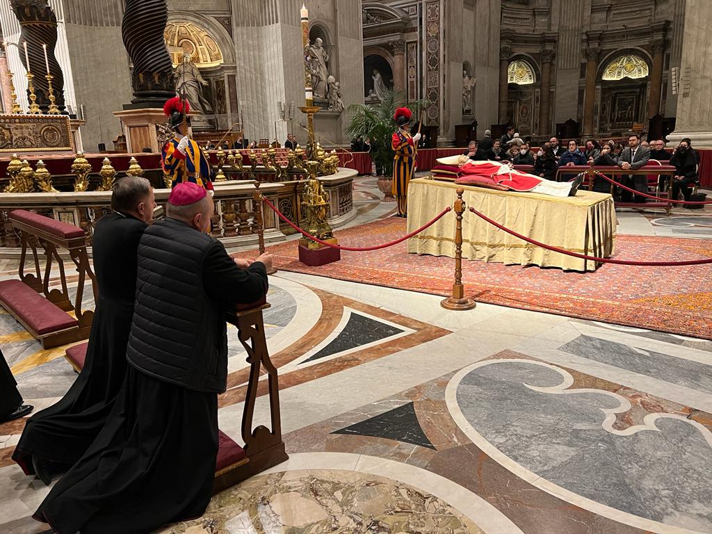 Sarà papa Francesco a presiedere domani, giovedì 5 gennaio alle 9.30 in piazza San Pietro, i funerali di Benedetto XVI. Ma non sarà la prima volta nella storia della Chiesa in epoca moderna che un papa regnante celebra le esequie di un papa emerito. A precisarlo è Andrea Tornielli, su Vatican news, citando il caso di Pio VI, che dopo essere morto in esilio a Valence nel 1799 prigioniero di Napoleone, ebbe funerali solenni tre anni dopo, quando le sue spoglie vennero riportate a Roma: le esequie furono celebrate da Pio VII, nella basilica di San Pietro, nel 1802. Il defunto, al secolo Giannangelo Braschi (Cesena 1717 – Valence 1799), eletto pontefice nel 1775, dopo un lungo regno morì in esilio in Francia, prigioniero di Napoleone. Le esequie si svolsero a Valence, subito dopo la morte, mentre i “novendiali” (i nove giorni di messe di suffragio prima dell’inizio delle votazioni in conclave) si tennero a Venezia, nella città in cui i cardinali si erano riuniti per eleggere il successore. Pio VII, eletto il 14 marzo 1800, volle riavere a Roma le spoglie del predecessore, che furono riesumate nel dicembre 1801 e viaggiarono da Valence a Marsiglia e di qui, via nave, verso Genova. Sbarcata in Italia, la salma del pontefice esiliato iniziò un pellegrinaggio trionfale, con solenni esequie celebrate a ogni tappa. Il 17 febbraio 1802 avvenne “il magnifico ingresso trionfale a Roma”, con i cardinali che attesero le spoglie a ponte Milvio. La solenne cerimonia funebre venne celebrata in San Pietro in presenza di papa Pio VII. I resti di Pio VI non ebbero però pace: il cuore e i precordi di Pio VI furono riportati a Valence, su richiesta esplicita del governo di Parigi, con un lungo viaggio di ritorno attraverso varie tappe in Francia nel 1802. Ma nel 1811 il cuore fu nuovamente riportato a Roma.