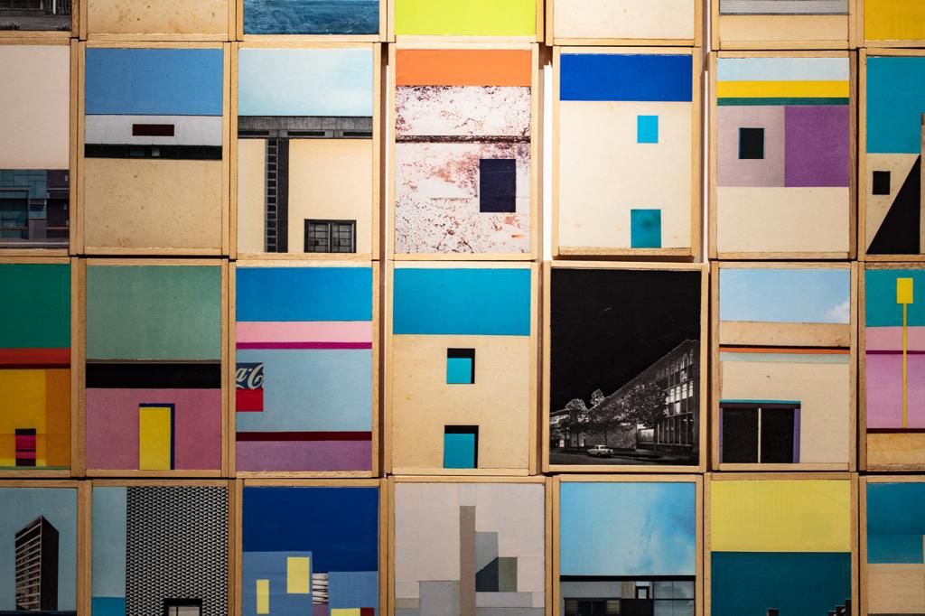 In effetti, i collage sono concepiti costruttivamente per livelli addizionali e si “nutrono”, in alcuni casi, di frammenti ritagliati dalle riviste conservate nello studio paterno che tornano così a vivere di una vita autonoma, mettendo insieme passato e futuro e rivendicando, però, una piena autonomia formale ed espressiva, che appare come l’intuizione coloristicamente e compositivamente più felice dell’intera esposizione.
