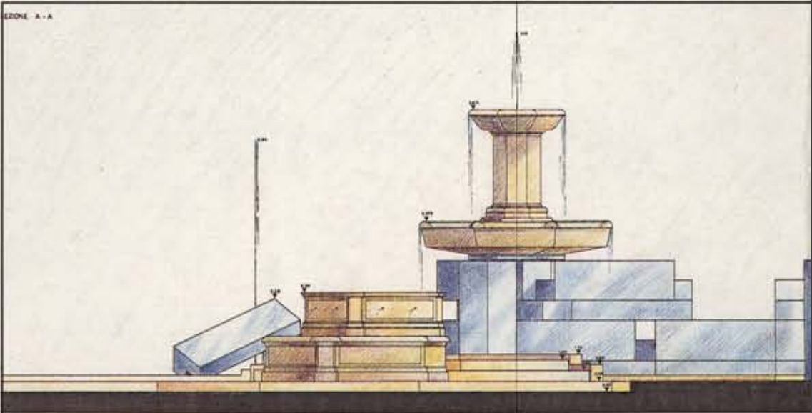 Opera paradigmatica per la storia della scultura e dell’urbanistica italiana. Nelle intenzioni dell’artista, il senso di quel lavoro inaugurato nel 1992, non era solo una scultura, ma un progetto urbanistico vero e proprio, ideato nella sua interezza nell’ambito di un programma di pensiero sofisticato e quindi ben definito. “La scultura non ha solo il diritto di abitare gli spazi urbani, ma ha il dovere di essere abitabile, di rispondere cioè ad un uso se non proprio ad una funzione possibile”, sosteneva l’artista, garantendo inoltre che “Scultura è operazione del mutare, strumento indispensabile del continuo occupare e dimensionare lo spazio”. Nel suo testo, Carrino sostiene che “si è trattato quindi di riattivare un luogo della memoria cittadina intervenendo con un elemento scultoreo significante per la contemporaneità (l’acciaio a Taranto) e integrando con esso i reperti architettonici dell’antica fontana ottocentesca. Il progetto definisce l’aspetto formale e funzionale della nuova fontana risultante dall’aggregazione dei reperti di quella preesistente, ottocentesca, integrati con la nuova scultura in acciaio, e quindi l’assetto planimetrico della piazza su cui poggia ed in cui si disegna la nuova vasca”. L’intervento scultoreo “razionalizzante” – sostenuto dall’Assessorato alla programmazione economica e progetti speciali del Comune di Taranto – rientrava in una più generale opera di intervento sulla città vecchia. L’intervento contribuisce a realizzare nel contesto unitario dell’ambiente e nell’accezione del riuso dei luoghi, la particolare visione di un restauro urbano che osserva regole e metodi del restauro conservativo in rapporto a segni di assoluta novità, proponendosi in tal modo come esempio di realizzazione possibile in materia di salvaguardia e valorizzazione urbana della città storica.» (Nicola Carrino)