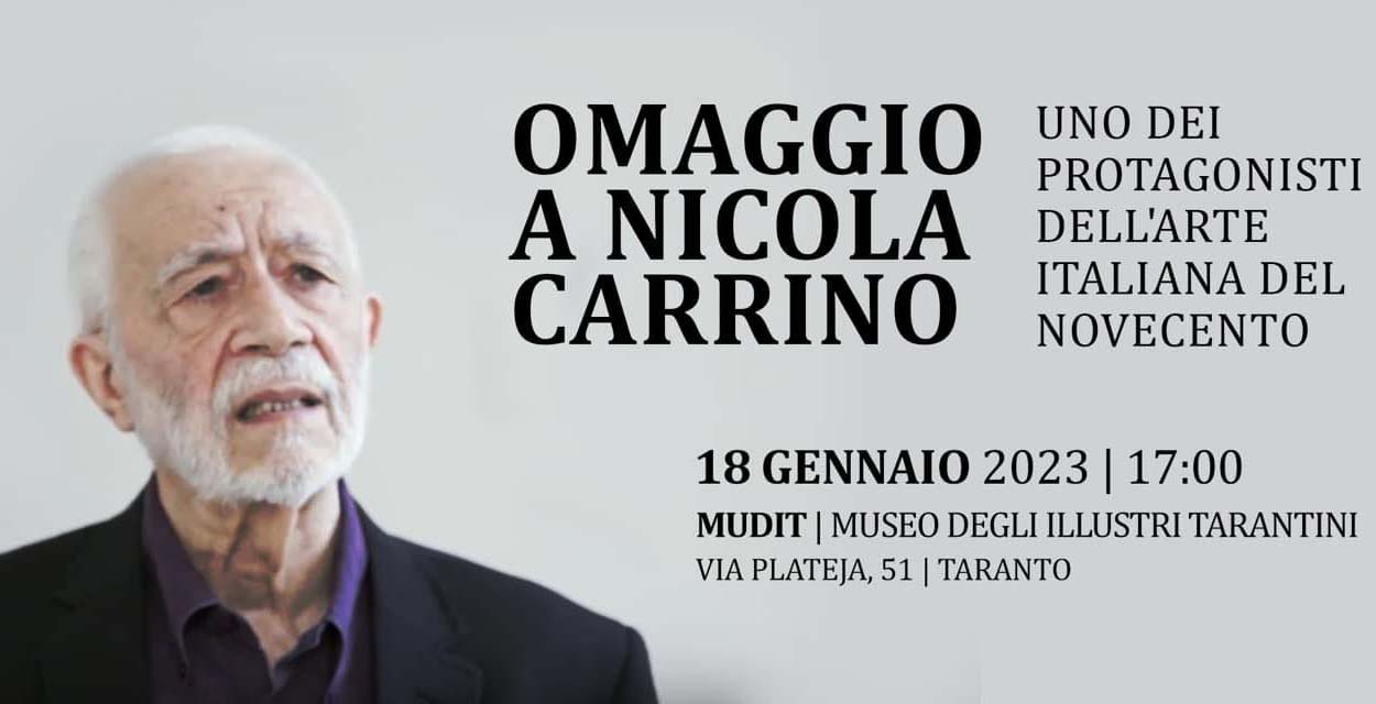 Mercoledì 18 gennaio 2023, con inizio alle ore 17 nella sede del Mudit – Museo degli illustri tarantini -, per iniziativa della Società di Storia Patria per la Puglia, sezione di Taranto, in collaborazione con il Comune di Taranto, la Museion soc. coop. e il Mudit, si renderà omaggio a Nicola Carrino, uno degli artisti italiani, più significativi del Novecento.