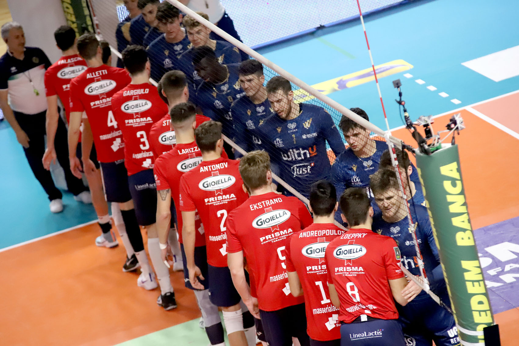 In effetti, sia nel primo che nel secondo set, a partire forte era stata la WithU Verona; seguiva poi la reazione dei “gioielli” trascinati da Loeppky, miglior realizzatore degli ionici con 14 punti, e da Alletti, risultato tra i migliori. Agli ospiti invece non sono bastate le prestazioni positive di Mozic e di Keita. Tra i giocatori della Prisma, la sfortuna ha colto l’azzurro Tommaso Stefani, infortunatosi alla spalla ad inizio partita, dopo essere andato alla battuta.