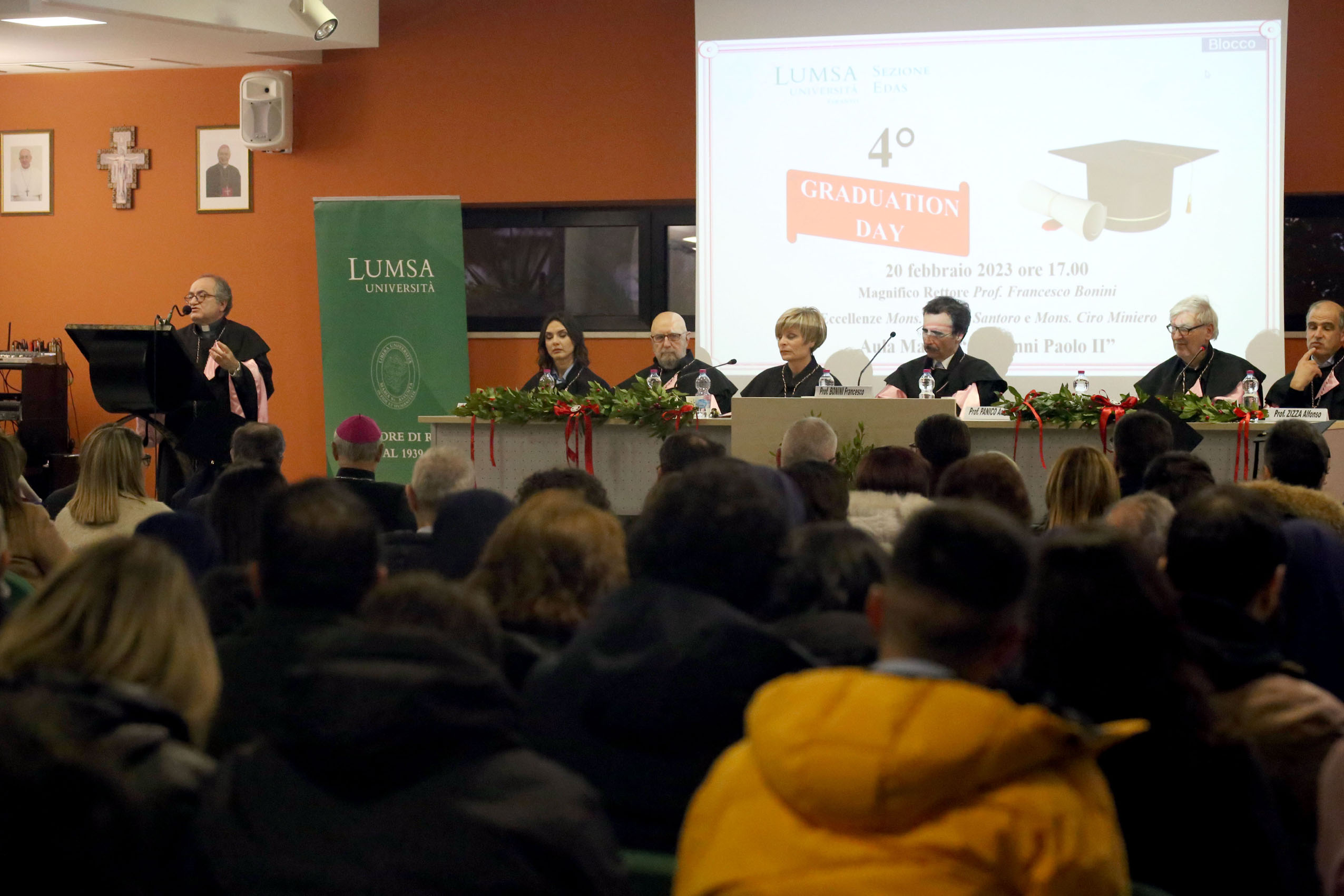 «La Lumsa è un’università che ha qualcosa da dire. Avere qualcosa da dire significa non accontentarsi del mainstream, ma  riuscire a portare qualcosa di nuovo nelle professioni. L’Università può dire qualcosa attraverso i propri studenti, attraverso le proprie ricerche, attraverso il proprio interagire con la società. Non è un qualcosa da dire di tipo ideologico, ma è un qualcosa da dire interagendo con il presente e con il futuro delle nostre società». Il magnifico rettore della Lumsa, Francesco Bonini, a Taranto per il Graduation Day, ha sottolineato così il carattere peculiare di una realtà accademica che mette al centro la persona e che è in continuo dialogo con la società.