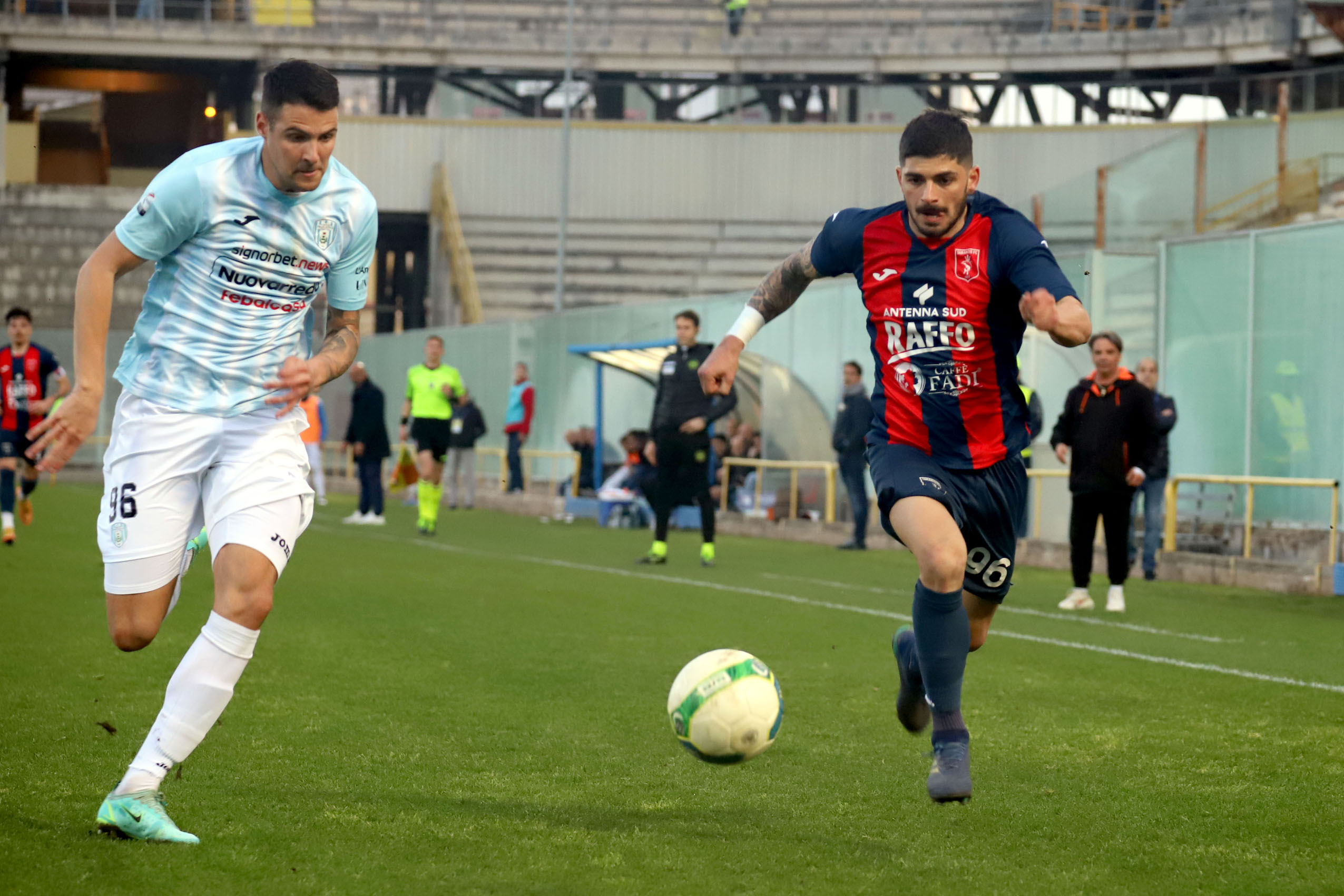 Nella ripresa la prima occasione per gli ionici la crea colui che sarà il match winner della serata che tira di destro al limite dell’area. Gli ospiti giocano di rimessa e non sono pericolosi mai. A due minuti dal termine, quando sembra che la partita voglia finire a reti bianche, Tommasini si libera della marcatura di Idda e con un diagonale punisce l’incolpevole Avella. Esplode la festa in campo e tra gli spalti – poco meno di mille gli spettatori presenti allo stadio. Dopo quattro minuti di recupero arriva il triplice fischio dell’arbitro.
