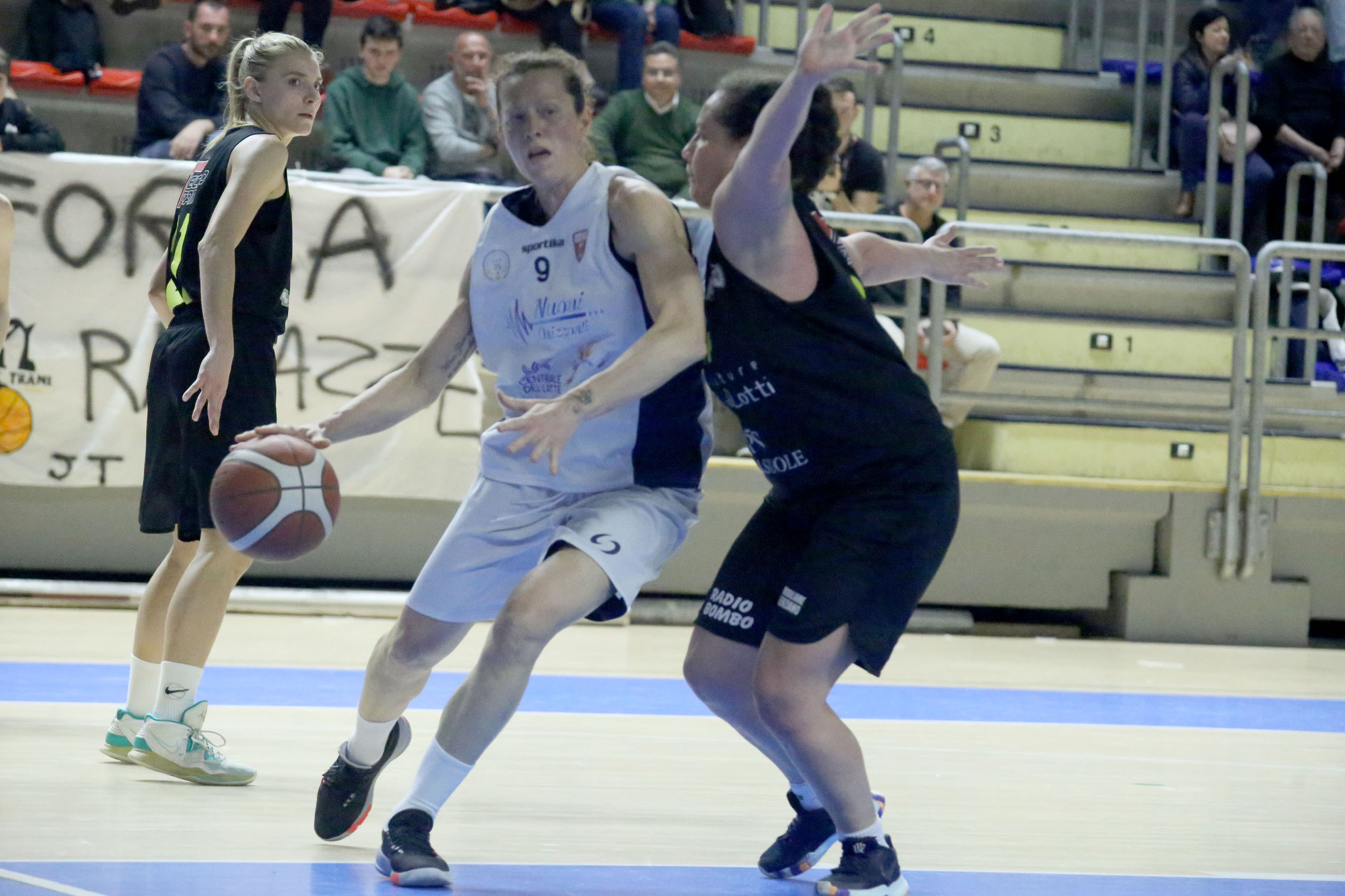 Giocarsela fino in fondo. E sovvertire il pronostico che, già alla vigilia di gara1, pendeva leggermente dalla parte della Juve Trani, arrivata al primo posto del girone nella regular season solo per la differenza canestri: era questo l’obiettivo della Nuovi Orizzonti basket Taranto facendo ritorno al Palamazzola. Una partita da dentro o fuori. Dalle mani che tremano, dalle gambe che possono farsi piombo, sotto i colpi dello stress e della fatica, quando la tensione non tramuta in benzina nella forma dell’adrenalina. L’esito non è stato felice. Trani, infatti, si è aggiudicata la partita (42-34), dopo averla condotta sin dalle prime battute. Alla Nuovi Orizzonti non è bastata la bulgara Kristina Manolova. Che, top scorer della serata con 15 punti, aveva favorito la rimonta delle padroni di casa alla fine della terza frazione di gioco – dallo svantaggio massimo di 13 punti al 33 pari.