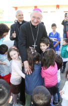 I piccoli alunni con le loro famiglie, tutto il personale docente ed ausiliario, la direttrice prof.ssa Marivita Pardo e mons. Luigi Romanazzi, in rappresentanza della Fondazione che gestisce l’omonima scuola, si stringono nell’abbraccio all’arcivescovo mons. Filippo Santoro, lì per la prima volta.