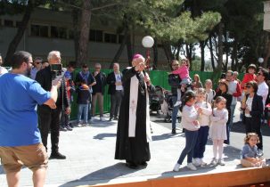 La visita si è conclusa con un momento ludico, in cui l’arcivescovo si è distinto per una sorprendente abilità sportiva. Dopo aver benedetto il nuovo campo di bocce regolamentare, realizzato con il contributo delle famiglie per far giocare insieme nonni e nipotini, mons. Santoro lo ha anche inaugurato con una vigorosa “bocciata”, scombinando le altre sfere ed accostandosi subito al boccino. Il Pianeta che speriamo, tema della 49ma Settimana Sociale dei Cattolici Italiani, vissuta a Taranto nel mese di ottobre 2021 proprio a pochi passi dalla stessa scuola, sembra così vedere la luce anche in questa parte della città, in cui accanto al campo di bocce si sta allestendo un orto che speriamo, dove si potrà seminare e raccogliere, mettendo in comune fatiche e frutti, proprio come nell’esperienza educativa proposta.