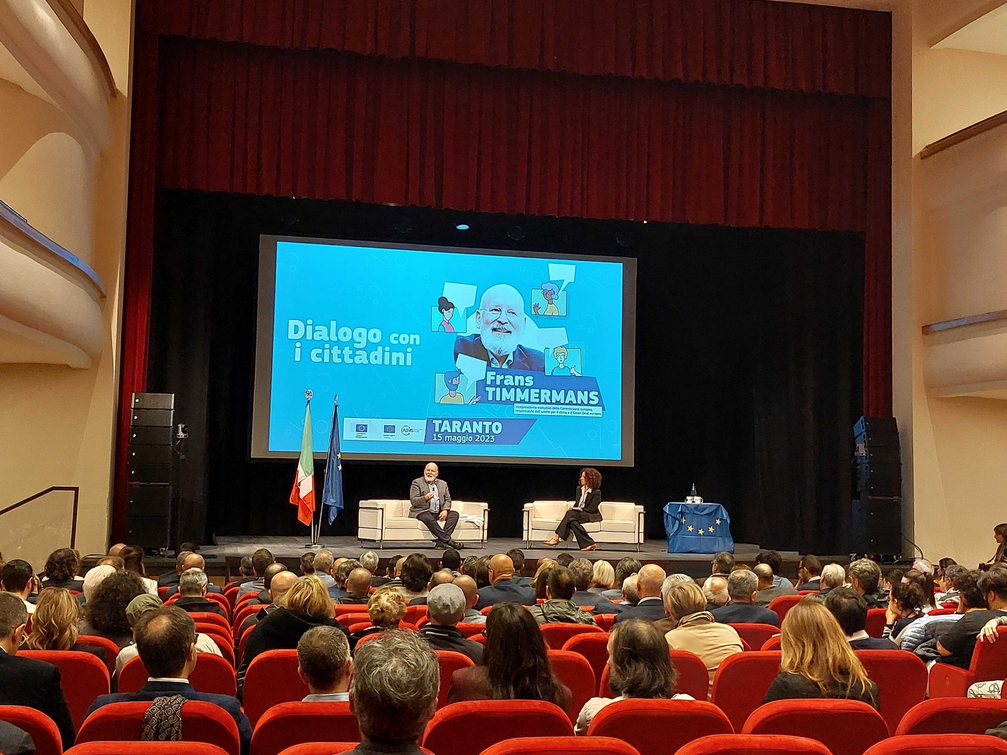 Nell’ambito della stessa iniziativa, abbiamo assistito ai due eventi che si sono tenuti alla Camera di commercio a Taranto, la scorsa settimana. Prima ancora all’importante incontro tra il governatore della Puglia e il vicepresidente esecutivo della Commissione europea – responsabile dell’azione per il clima e il Green Deal europeo. Il dibattito è andato in scena al teatro Fusco grazie alla collaborazione di Europe Direct Taranto. Come ha riconosciuto Michele Emiliano, la visita nel capoluogo ionico di Frans Timmermans va intesa come un bel segnale di fiducia per chi combatte, e vorrebbe veder finalmente coniugate le ragioni di lavoro salute ambiente. La sfida è vedere l’acciaio pulito nel futuro di Taranto. Tutelare l’ambiente, e migliorarlo, creando nuova occupazione, nel contempo.