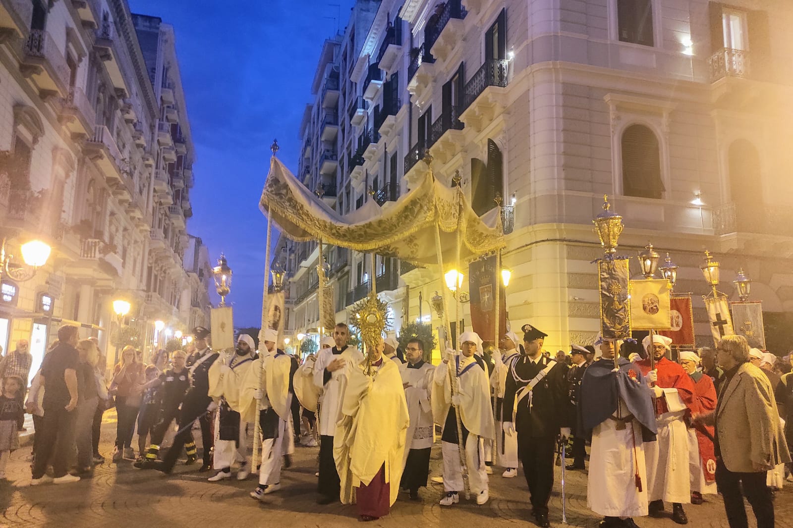 Preghiamo per la Chiesa tutta, per la salute di papa Francesco, per i nostri ammalati, per i nostri giovani e vorrei qui anche ricordare le migliaia di bambini ai quali nelle nostre parrocchie abbiamo amministrato la Prima Comunione, perché accompagnati dalla nostra testimonianza, crescano cristianamente assimilati a questo Pane che hanno ricevuto da una comunità che non si stancherà di continuare ad educarli nella fede. E preghiamo anche per i giovani che hanno ricevuto la Confermazione, che non siano costretti ad emigrare e siano testimoni della fede e pieni di passione per la giustizia e la pace in questo momento decisivo per il rilancio di tutto il nostro territorio.