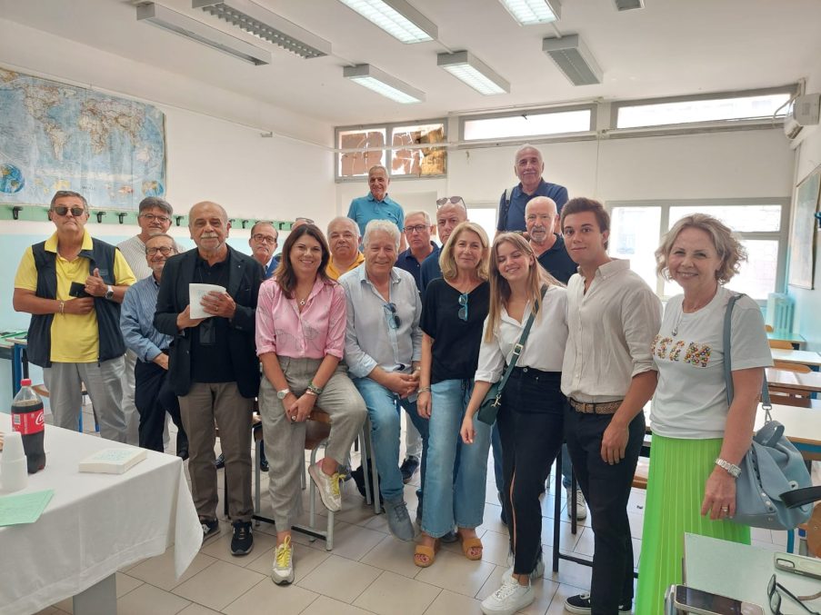 Nell’afoso luglio del 1973, con l’azzurro Golfo di Taranto a far capolino sulle vetrate della scuola, la terza E, una sezione tutta al maschile, una vera anomalia in un panorama scolastico già all’epoca popolato di sole sezioni miste, contava ventitré alunni. Numero oggi assottigliato da un tempo che se ne è portato qualcuno via, mentre altri, distribuiti lungo lo stivale per ragioni di lavoro o per scelta di vita, non hanno potuto essere presenti.