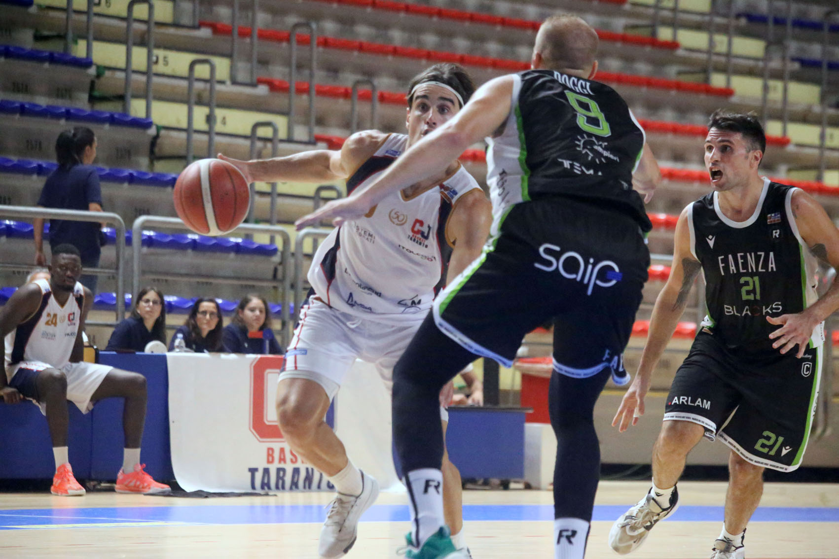 Riscattare la sconfitta di domenica scorsa in terra emiliana e replicare l’ottimo avvio della prima partita di campionato. Ovvero ritrovare la continuità: era questo l’obiettivo del CJ Basket Taranto alla vigilia del turno infrasettimanale, giocato contro la Raggiosolaris Blacks Faenza, in casa. Strappare anche un sorriso al presidente Sergio Cosenza. Il quale, vittima di un incidente domestico, non ha potuto assistere alla gara. La missione però non è riuscita. Colpa dell’avversario, che si è dimostrato più squadra del gruppo ionico, almeno per una serata, e delle assenze che hanno pesato in campo (fuori Valentini e Lusvarghi). Faenza si è imposta con il punteggio di 76-66.