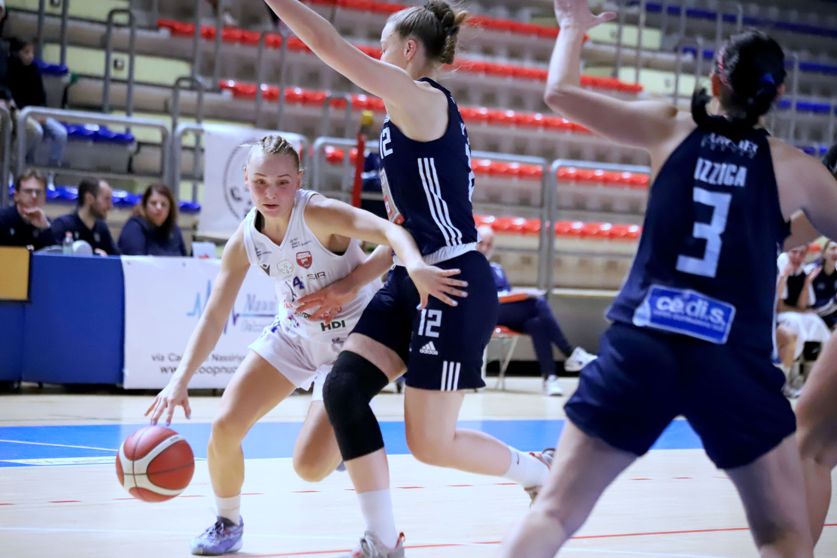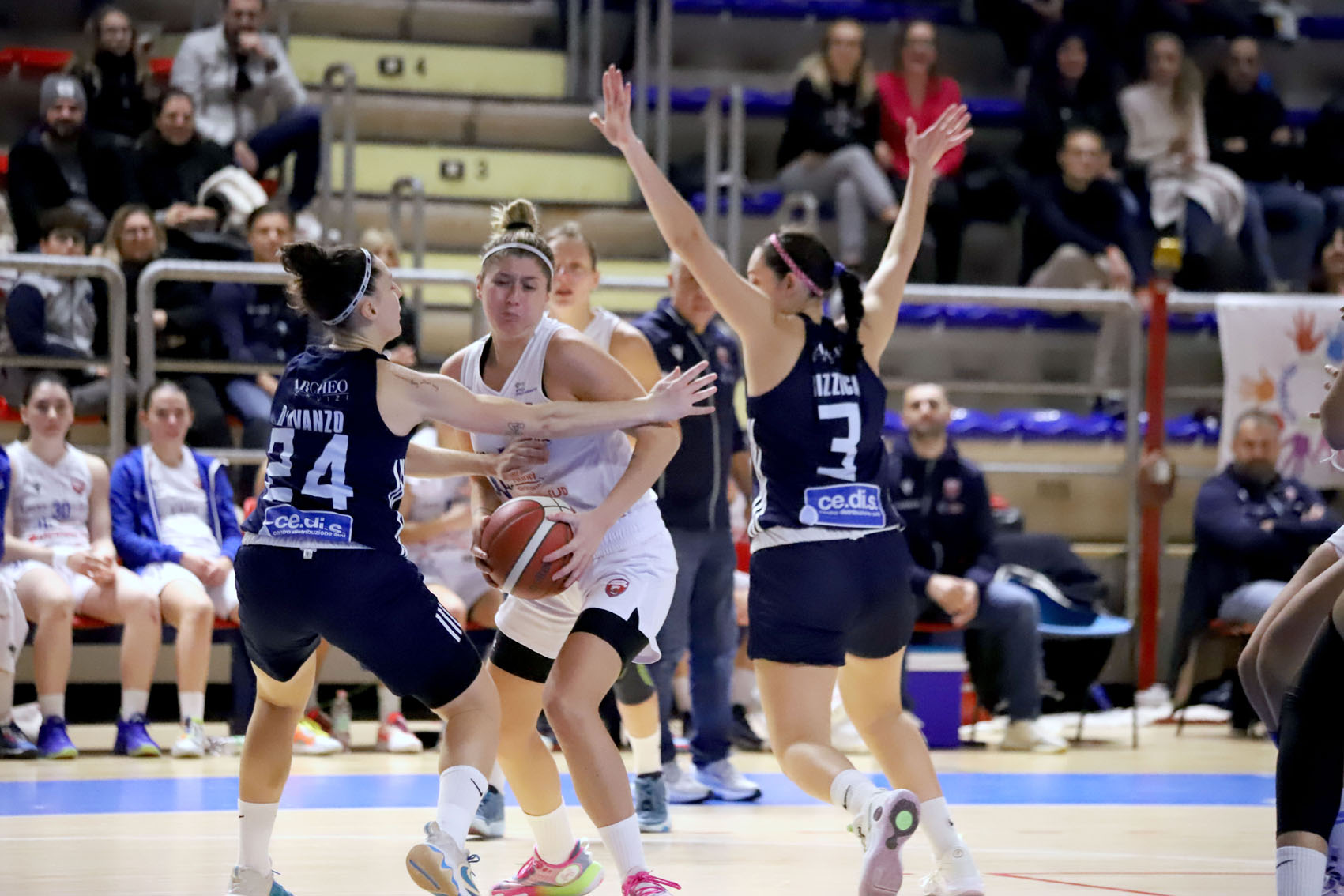 Riprendere la marcia. E dare conferma del valore tecnico della squadra, dimostrato nell’avvio stagionale, dell’agonismo che sa mettere in campo, contro qualsiasi avversario: era questo l’obiettivo della Nuovi Orizzonti Taranto alla vigilia del match con la Catillo Benevento, valevole per la quarta giornata di campionato. Un appuntamento rinnovato tra le mura amiche del PalaMazzola, nella serata di sabato. L’operazione è stata portata a termine grazie a una prova convincente offerta dalle ragazze allenate da William Orlando. All’interno di un match che non ha avuto momenti di pathos: sempre avanti nel punteggio, la Dinamo ha espresso il suo gioco con continuità, per tutti i quaranta minuti di gioco, riuscendo a contenere la reazione delle avversarie. Una vittoria mai messa in discussione – 63 a 47 il risultato finale (21-14, 40-25, 51-37). Sugli scudi Claudia Tagliamento, top scorer della serata con 23 punti; in doppia cifra Smaliuk, Gismondi e Ivaniuk. Il roster ha fatto a meno del contributo della talentuosa Mari Panteva, tenuta a riposo precauzione per i postumi di un vecchio infortunio.