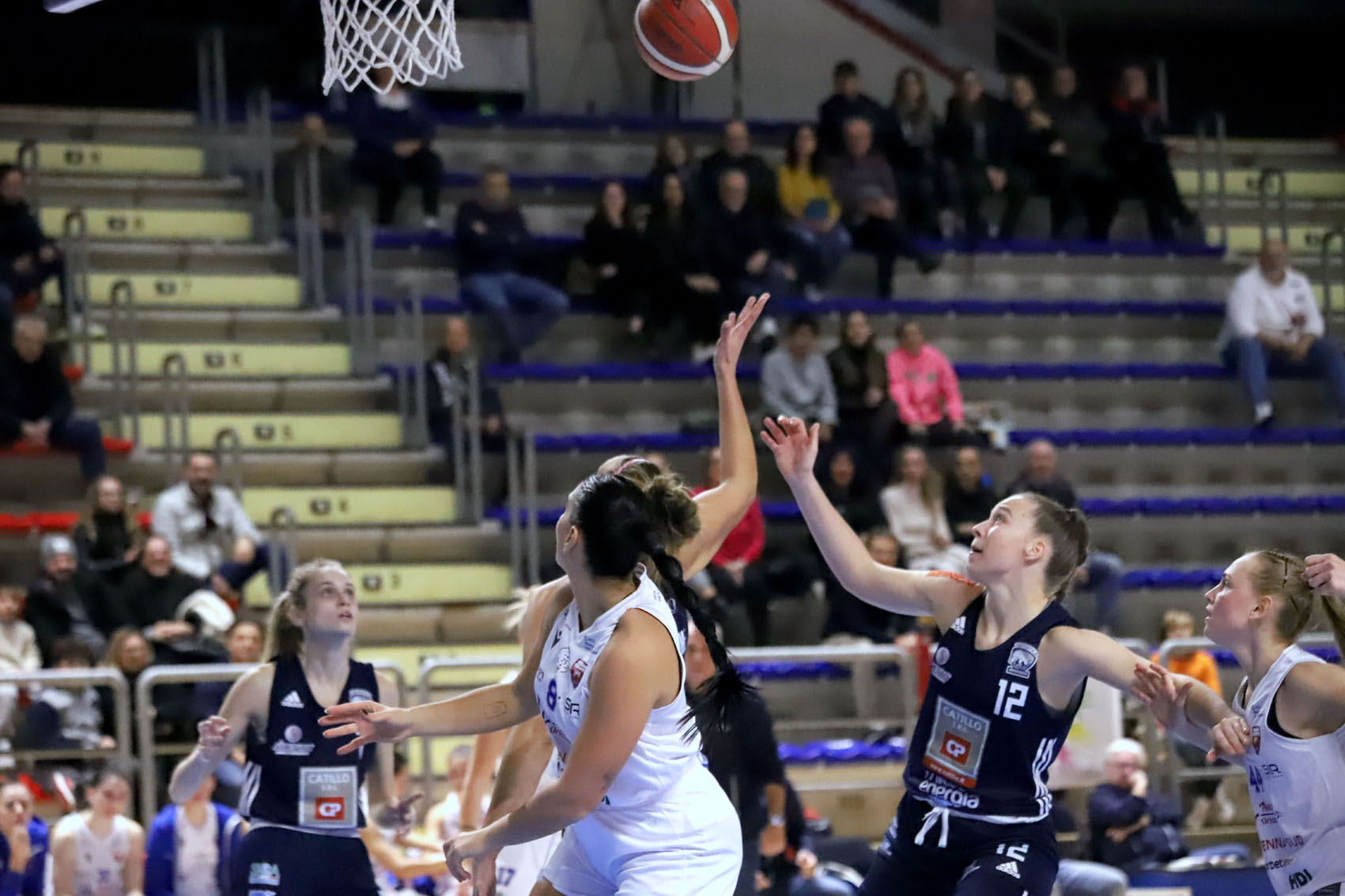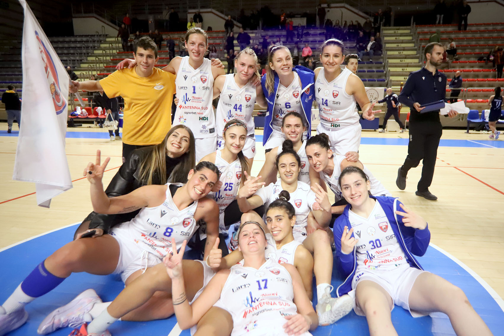Starting Line Up Nuovi Orizzonti: Ivaniuk, Smaliuk, Tagliamento, Lucchesini, Gismondi. Quest’ultima sblocca il risultato dalla lunetta. Poi arriva la tripla di Ivaniuk, per l’ottima partenza di Taranto. Benevento accorcia le distanze. Ancora Ivaniuk fa due su due ai tiri liberi. Le fa eco, con un’azione di forza, l’altra ucraina, Smaliuk (9-2). Taranto alza il ritmo difensivo. Poi arrivano i canestri di Tagliamento, che sarà la grande protagonista della serata, sia in attacco che ai rimbalzi. Di Lucchesini l’ultimo centro per Taranto. Il primo quarto si chiude sul 21-14. Nel secondo, va a segno la formazione avversaria. Risponde con una tripla Ivaniuk: la stessa play ucraina sale in cattedra mandando a canestro più volte Tagliamento. La quale manda le squadre a riposo sul 40-25. Nel secondo tempo la Catillo si fa più aggressiva: accorcia il gap (33-42) costringendo coach Orlando a chiamare timeout. Il break dà i frutti sperati. Segnano Gismondi e Martelli. Nel finale la protagonista è Smaliuk. Ancora Tagliamento completa l’opera nell’ultimo quarto facendo raggiungere a Taranto il vantaggio massimo di +19 (56-37). Il resto è ordinaria amministrazione. La Dinamo ritrova la vittoria, preziosa, davanti al pubblico di casa, e rilancia le proprie ambizioni nella serie B nazionale.