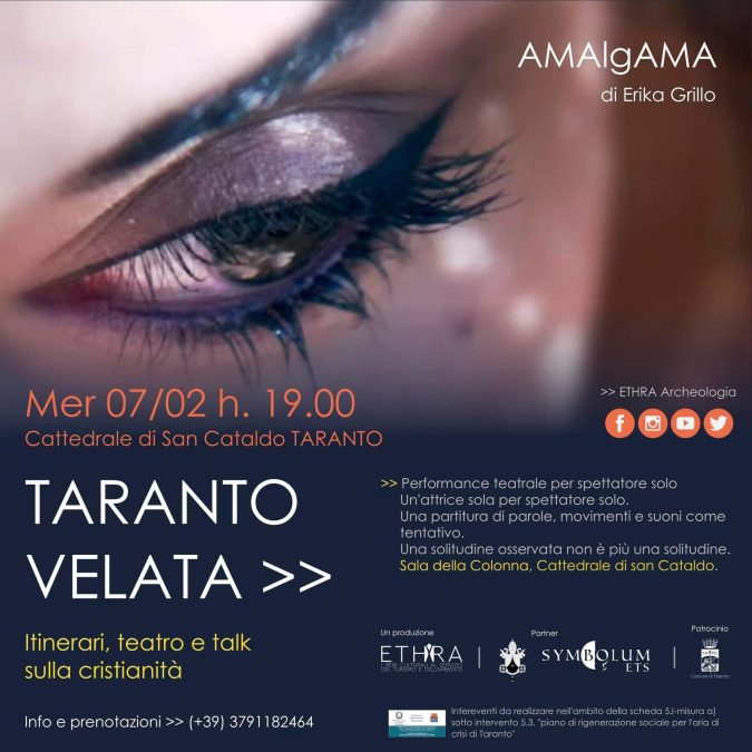 Nuovo appuntamento con “Taranto Velata” ideato e realizzato da Ethra Archeologia e Turismo in collaborazione con Symbolum Ets e con il patrocinio del Comune di Taranto. Il progetto prevede itinerari guidati e visite a siti della città vecchia legati alla cristianità ma non sempre accessibili; lo svolgimento di reading, spettacoli teatrali e talk.