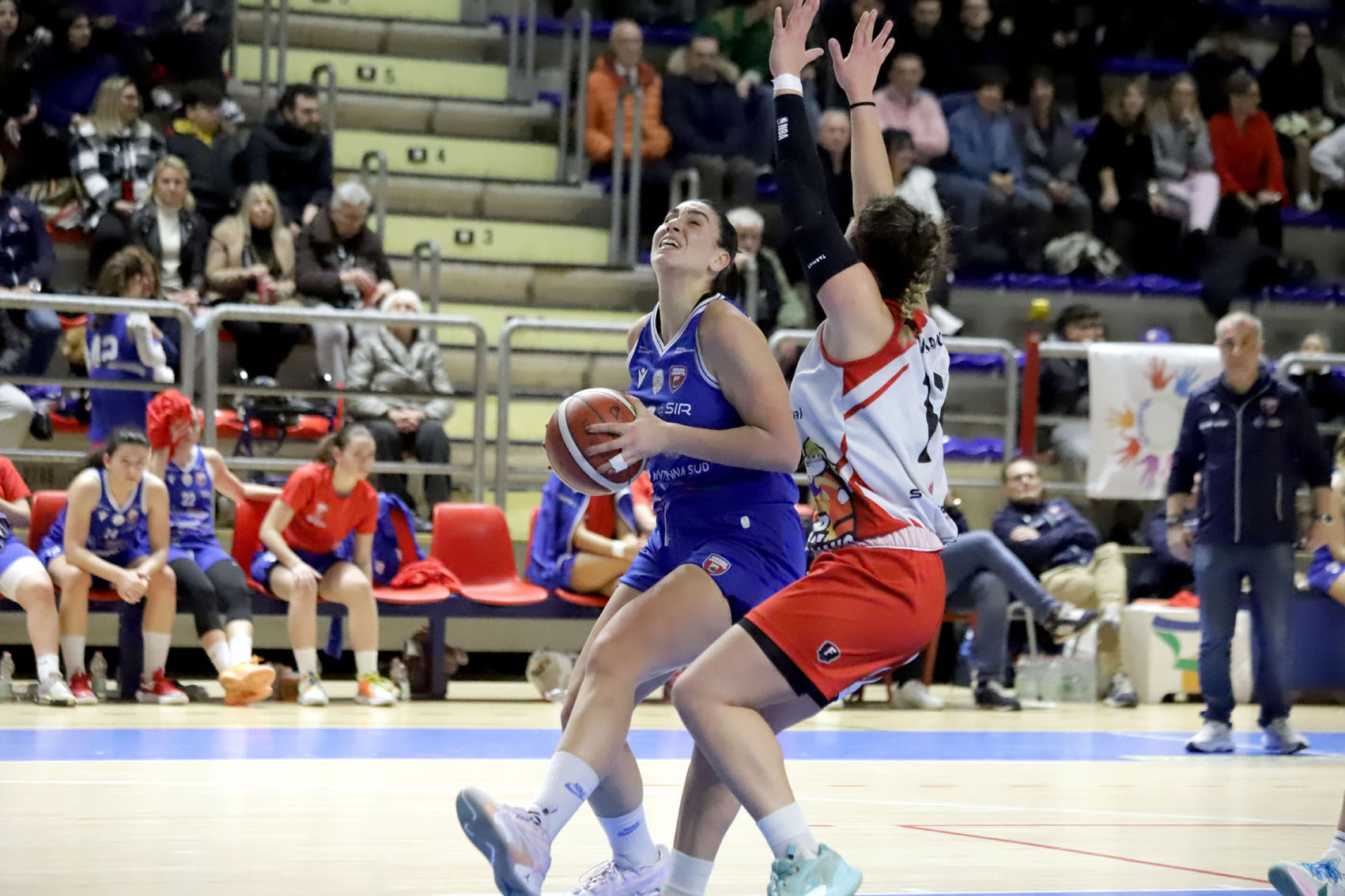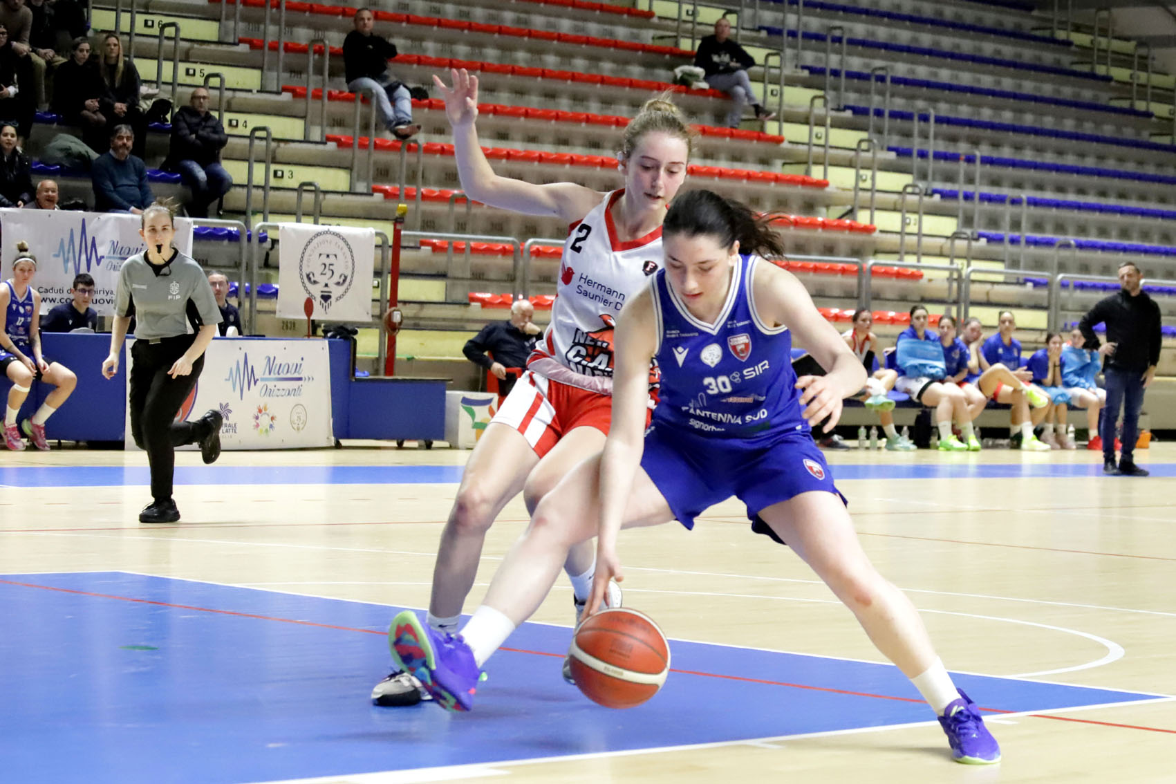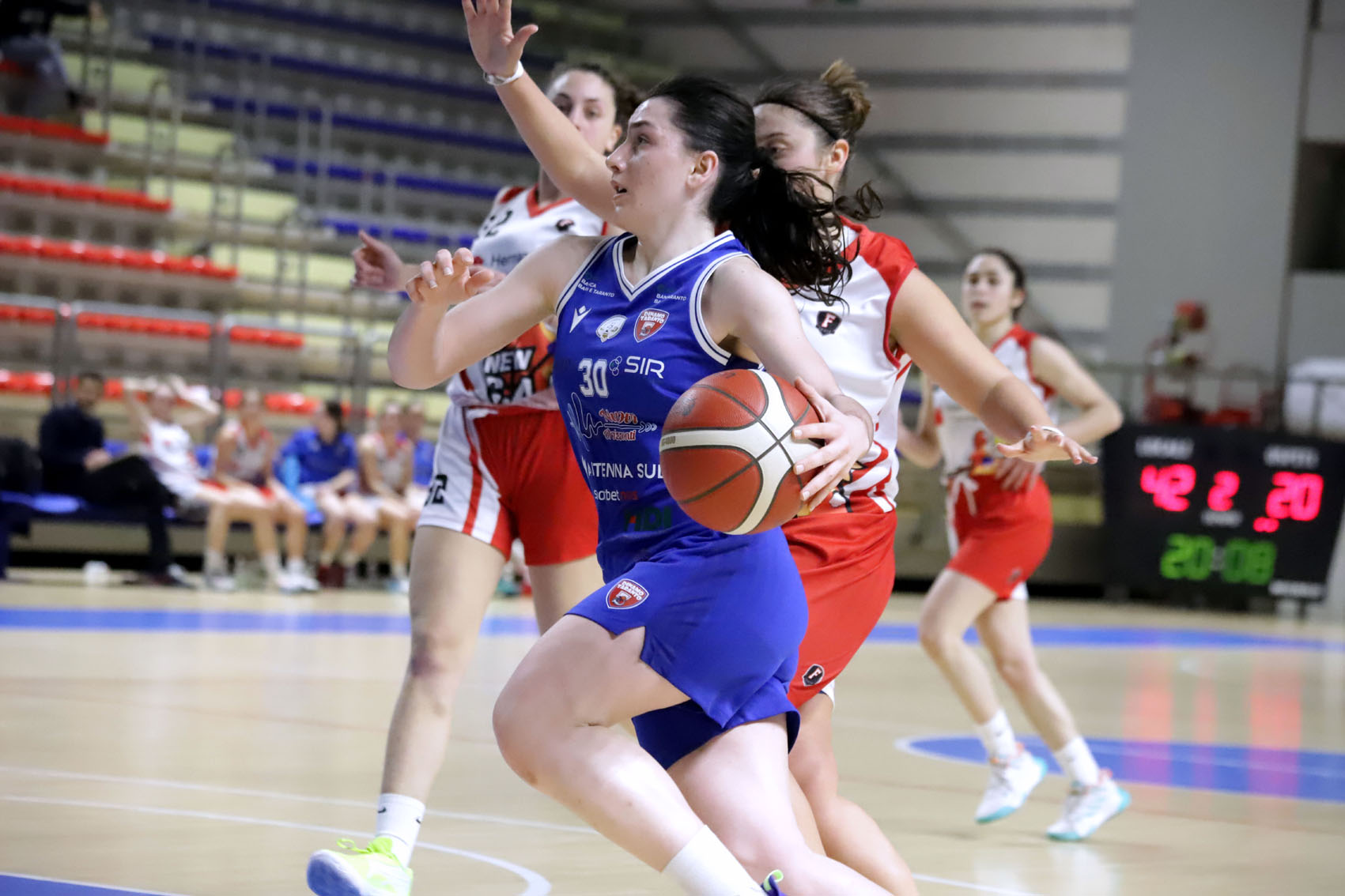 Buona partenza delle padroni di casa (5-0), le ospiti rispondono con Fabiana Amato e Zoe Massarotti. Poi ci pensa Claudia Tagliamento a realizzare sotto canestro e dalla lunetta. La Nuovi Orizzonti può sbloccarsi, comincia a crescere il gap (18-8), grazie a Yaroslava Ivaniuk che è anche lesta a rubare palla in due circostanze, a correre e a conservare la lucidità in attacco. In questo quarto di gioco possono entrare e offrire il loro contributo anche Silvia Gobbi, Morena De Pace e Alice Turco. Quest’ultima va a segno all’inizio del secondo periodo, seguita da Alice Lucchesini, Tagliamento e Erika Martelli. Oltre alla mira, Ivaniuk ha pure una vista eccezionale: dal canestro avversario, vede Martelli in attacco e la serve con un lunghissimo e preciso lancio – la tarantina, top scorer della serata (19 pt) non ha problemi nel depositare in rete la palla. Si va all’intervallo sul 44-20.