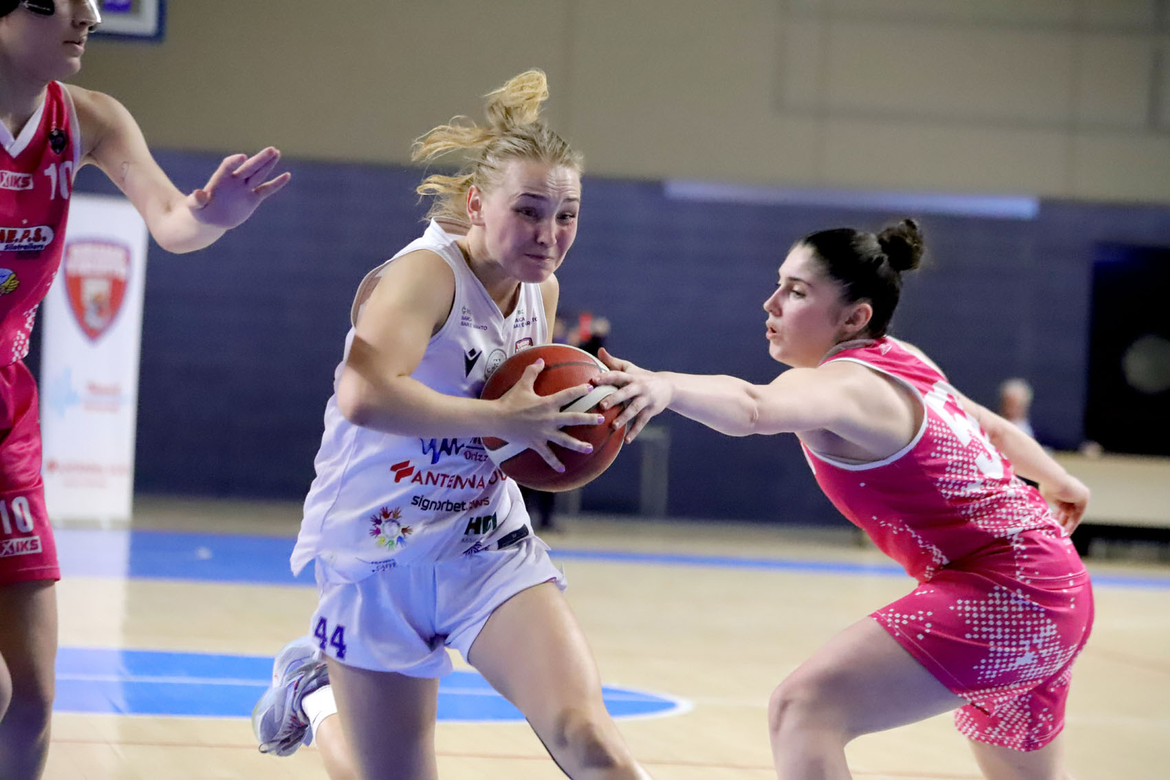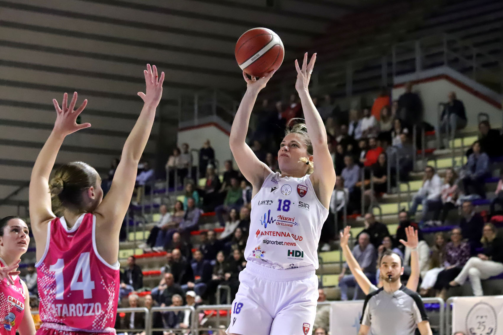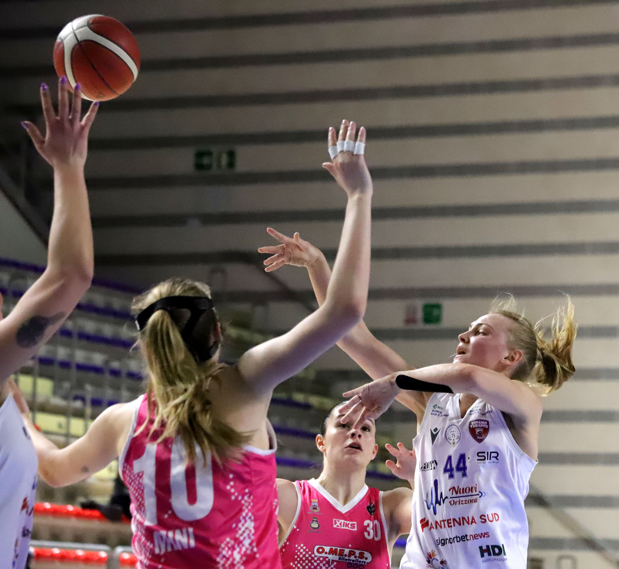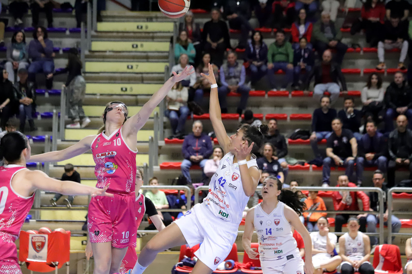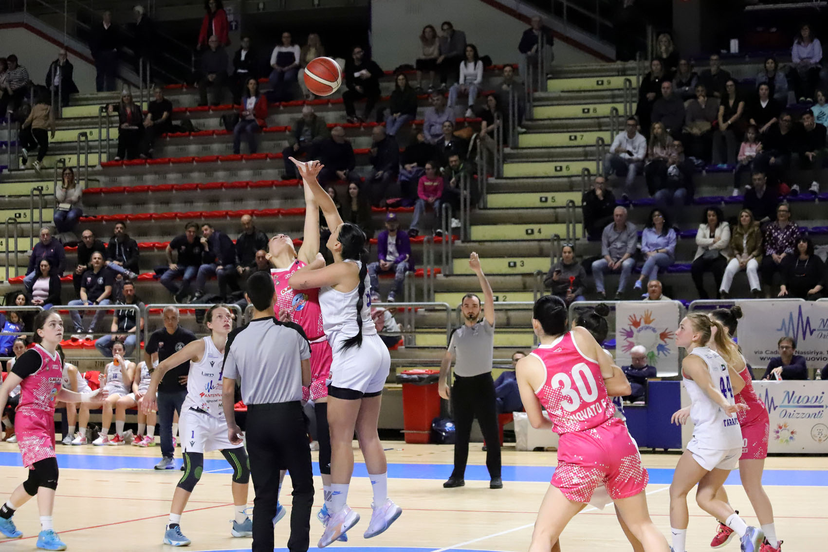 Starting lineup Nuovi Orizzonti: Smaliuk, Tagliamento, Martelli, Molino, Ivaniuk. Agropoli: Lombardi, Chiapperino, Catarozzo, Federica Chiovato, Milani. Avvio difficile per Taranto: al primo canestro dell’incontro firmato da Tagliamento rispondono Catarozzo e Milani (2-8). Yaroslava Ivaniuk dalla lunetta, poi Erika Martelli e Tagliamento costringono Federica Di Pace a chiamare timeout. La partita è equilibrata. Ma le ioniche sono imprecise nelle conclusioni ad alta percentuale, e la formazione ospite ne può approfittare, sino a portarsi sul +13 (26-13). La Nuovi Orizzonti si rifà sotto (23-28) prima di subire un break di 7 punti. Martelli, con due canestri, tiene viva la speranza. La segue ai tiri liberi Tagliamento (34-39). Ma l’ultima fase è favorevole all’Agropoli. Si va al lungo intervallo con 8 punti da recuperare (35-43). Nel secondo tempo le padroni di casa appaiono più determinate: vanno a segno Annapia Molino, Ivaniuk e Smaliuk. Poi accade l’inspiegabile. Alcune decisioni arbitrali vengono infatti suggellate dall’espulsione di coach Orlando, reo di aver incitato il pubblico a sostenere la squadra. Il timone passa a Mimmo Calviello. E come un leone ferito, la formazione di casa tira fuori gli artigli aumentando l’intensità difensiva e andando a canestro anche dall’arco. Tagliamento è monumentale nel portare il punteggio sul 72-64 a trenta secondi dal termine. Sembra fatta. Ai tiri liberi, però, Milani è implacabile, e si va all’overtime. Prosegue il combattimento fino alla tripla di Smaliuk (81-75). Il possesso palla è di Taranto, ma viene fischiato un fallo in attacco a Lucchesini; capitan Chiapperino ne approfitta per il canestro finale che regala il passaggio del turno alle sue compagne. Per la Nuovi Orizzonti sono lacrime. Ma anche applausi scroscianti per lo spettacolo offerto in una lunga serata, e per la grande stagione disputata.