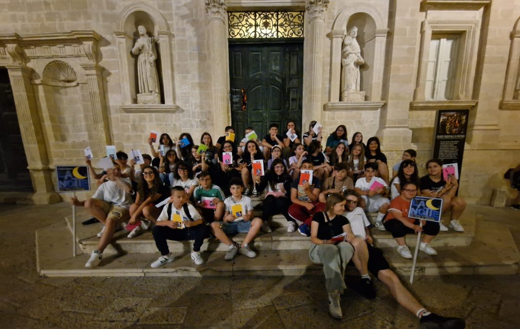 Il quinto giorno è iniziato alla stazione di Crispiano, raggiungendo in treno Martina Franca dove siamo stati ospiti del Villaggio di Sant’Agostino. Nella notte il viceparroco della basilica di San Martino, don Alessandro Fontò, ci ha condotta prima sulla terrazza della canonica dove, osservando le stelle, ha fatto una catechesi sul brano della Genesi in cui Dio dice ad Abramo che avrà una discendenza; successivamente in basilica il sacerdote ha raccontato la storia della chiesa e del culto a San Martino e Santa Comasia. Per questa notte barocca abbiamo vissuto con i ragazzi un piccolo laboratorio teatrale in basilica con dei “tableau vivant”.