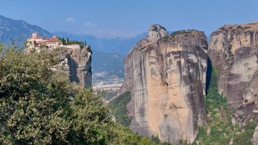 Infine, le Meteore, Μετέωρα, tappa intermedia e ambita del pellegrinaggio presso il centro monastico di Kalambaka nel nord della Grecia, al confine con la Tessaglia. Sospese tra il cielo e la terra, le meteore sono antichi insediamenti monastici eremitici bizantini, oggi attivi e visitabili solo in parte. Il gruppo è stato in due di essi. Il primo dedicato a San Caralampo, il secondo a Tutti i Santi. L’impatto qui è notevole, la vista si allarga sull’orizzonte e in altezza. Su lunghi pinnacoli naturali, forgiati dall’antico mare che lambiva la Tessaglia, sorgono monasteri secolari che sembrano un tutt’uno con la roccia. La leggenda vuole che il primo sia stato fondato da Sant’Atanasio, portato in cima sulle ali di un’aquila. È un luogo nel quale la natura e l’uomo hanno “collaborato” in armonia creando, con il lavoro paziente di secoli, strutture perfettamente incastonate sui costoni rocciosi. Lasciandosi guidare dalla suggestione, è facile immaginare la vita dei monaci di un tempo, scandita dalla preghiera, dal digiuno e dal silenzio, dal lavoro e meditazione. Oggi i monasteri attivi sono sei e si sono aperti anche a comunità monastiche femminili. All’interno dei monasteri non è consentito fare foto ma immaginatene la ricchezza di arte di ispirazione bizantina, i dipinti, la foglia oro che brilla sui rossi e sui verdi, gli ex voto, le rappresentazioni iconiche dei santi, storie raccontate per sequenze di immagini. E nel frattempo, tra uno scalino e l’altro, si rafforzano le relazioni che già c’erano e si fanno nuove conoscenze. Ognuno condivide a suo modo la propria esperienza e il desiderio di viaggiare, di conoscere. Si prega. Ci si scambia opinioni e punti di vista. A volte ci si scambia silenzi, importanti anche quelli. Anche questo è un “salire”, appunto. Verso l’infinito.