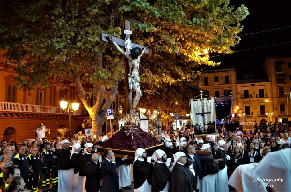Sabato 14, solennità del Santissimo Crocifisso, alle ore 10.30 santa messa, a mezzogiorno la supplica, alle ore 18.30 la Liturgia della Parola; a seguire, la processione per via De Cesare, via Anfiteatro, via Nitti, via Di Palma, via D’Aquino, via De Cesare e rientro in chiesa. Presterà servizio la Grande orchestra di fiati ‘Santa Cecilia-Città di Taranto’ diretta dal m. Giuseppe Gregucci.
