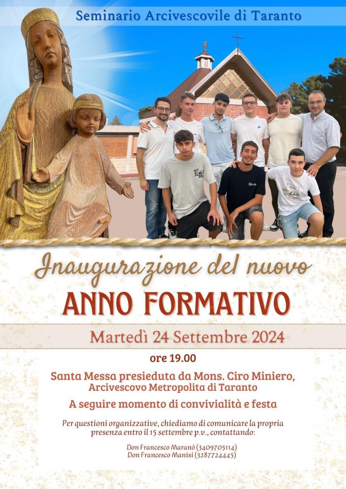 Martedì 24 settembre nella cappella del seminario di Poggio Galeso, l’arcivescovo mons. Ciro Miniero presiederà la santa messa in occasione dell’inaugurazione del nuovo anno formativo.