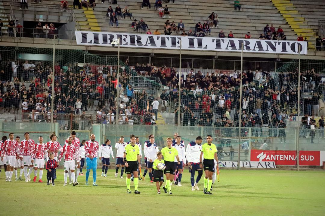 Due partite in una. In quarantacinque minuti di gioco: chi si fosse messo in ascolto della partita Taranto-Altamura soltanto al 60esimo si sarebbe rallegrato nel vedere il punteggio, il vantaggio degli ionici, e nel sentire il tifo dei supporter locali. Un contributo tutt’altro che scontato. Perché le vicissitudini del Taranto calcio, cominciate in estate, nel pre-campionato, sono esplose e hanno avuto il punto più basso nella odierna posizione occupata in classifica: gli uomini di mister Gautieri sono fanalino di coda della serie C- girone C, a quota due.