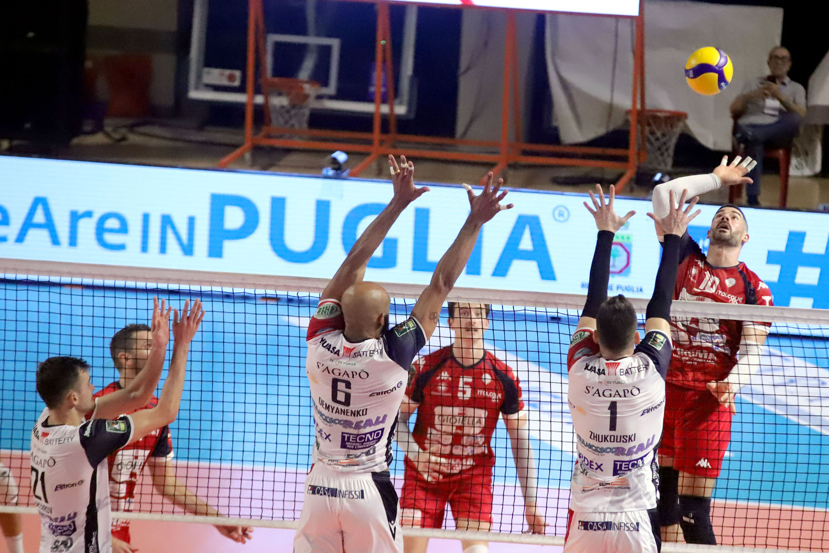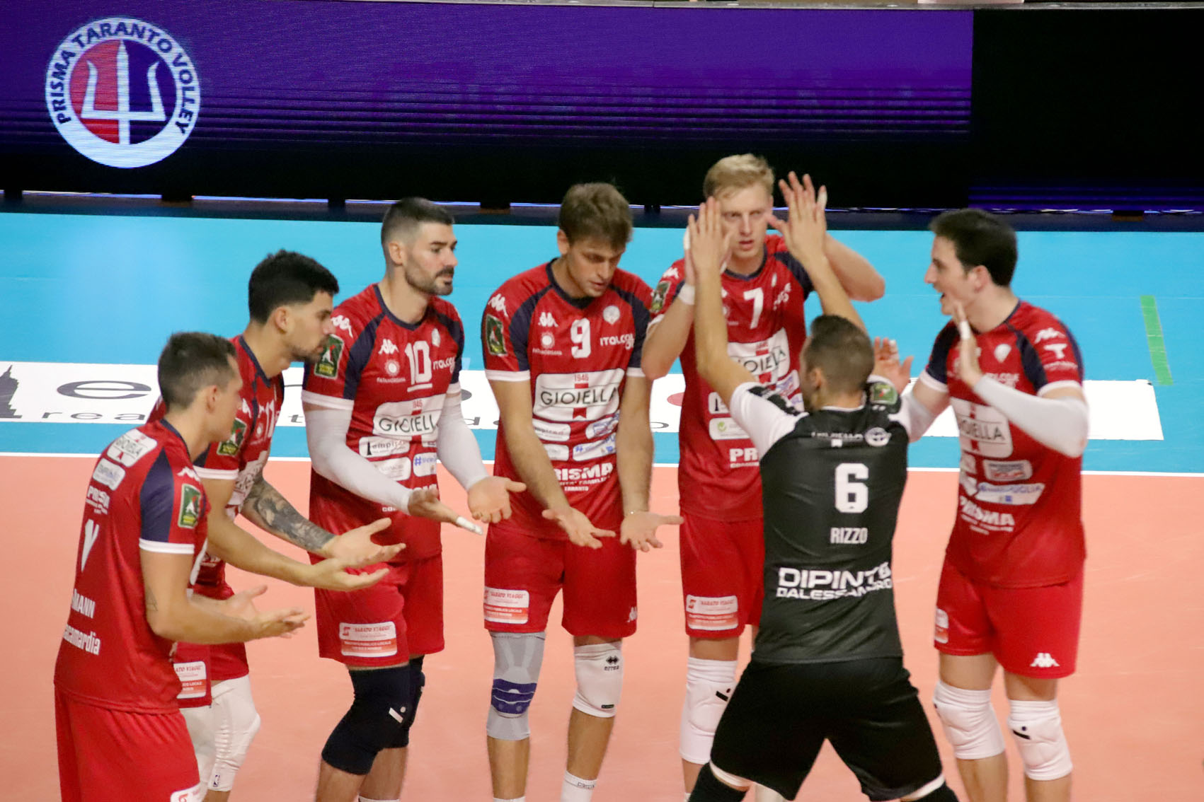 Un piccolo comune delle Marche di 3mila anime. Una grande realtà sportiva, approdata per la prima volta nella Superlega Credem Banca: è la Yuasa Battery Grottazzolina, che nel massimo campionato di volley maschile italiano non intende di certo assolvere al ruolo di vittima sacrificale. Lo aveva già dimostrato nelle tre ore di battaglia della sfida contro Padova. Due ore e 58 minuti, per esattezza (un record storico), fino alla resa nel quinto parziale. Quindi al PalaMazzola di Taranto la squadra dell’ex Oleg Antonov arrivava carica e ben motivata. E ha messo in seria difficoltà i padroni di casa, che l’hanno comunque spuntata conquistando l’intera posta in palio. Il 3-1 finale (25-14, 23-25, 25-17, 29-27) ridona fiducia alla Gioiella Prisma e consapevolezza dei propri mezzi nel prosieguo del campionato. La squadra ha dimostrato carattere, più continuità rispetto alla gara persa con Padova. Oltre alla cattiveria necessaria nei momenti chiave. Da segnalare, tra gli altri, l’ottima prova di Wout D’Heer, cresciuto a muro. Fondamentale nel quale gli uomini allenati da Boninfante non hanno brillato.