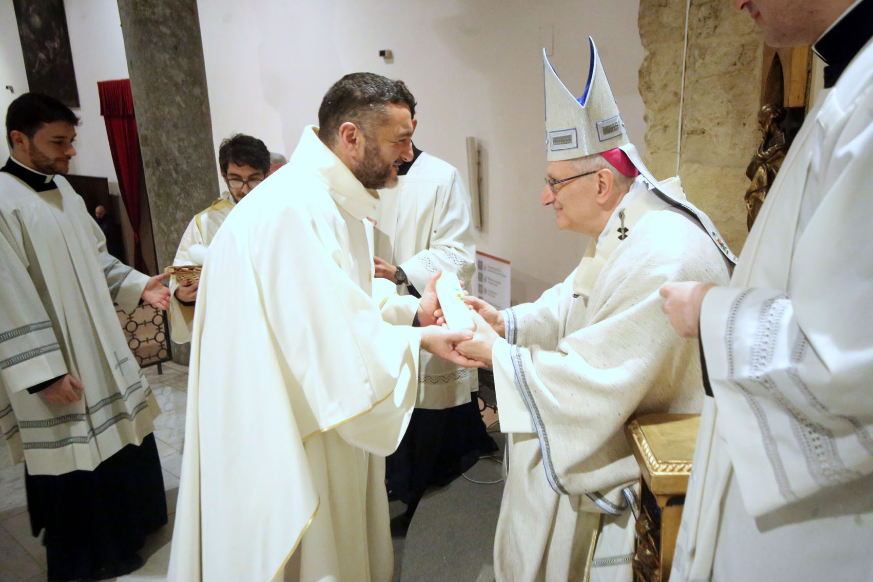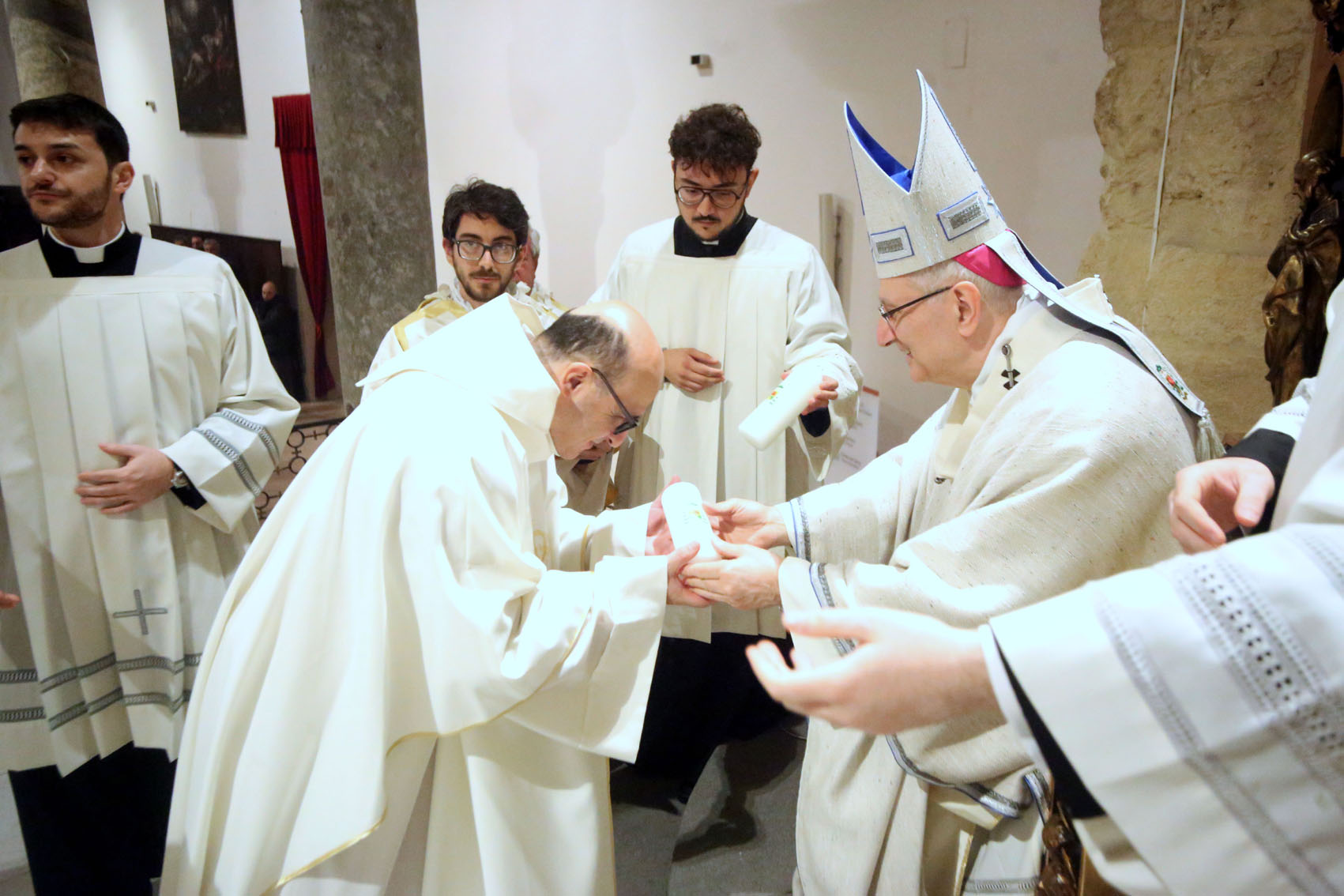 Al termine della celebrazione, mons. Ciro Miniero ha consegnato a ogni parroco un cero da porre ai piedi delle effigi mariane nelle rispettive chiese, come segno di unità attorno alla sua celeste patrona.