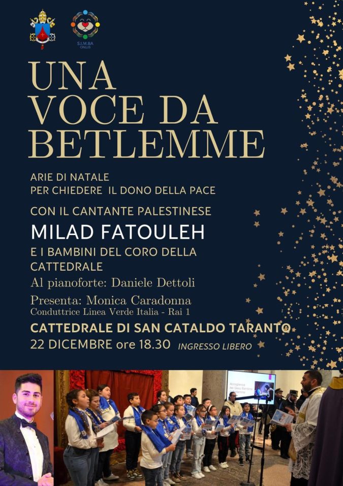 Si trattava di una canzone araba che parlava della speranza da coltivare insieme, che è stata tradotta in italiano per l’occasione. Le canzoni che canto oggi le scriviamo insieme a un gruppo di amici che collaborano con me. A Taranto, assieme ai bambini della Cattedrale, proporrò canti natalizi compreso, naturalmente “Una stella per Betlemme”.