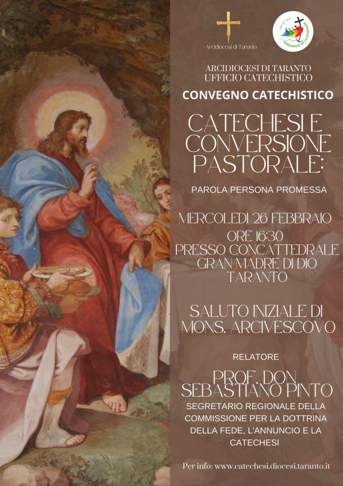 Il primo appuntamento in ordine di tempo è il convegno dedicato al tema: “Catechesi e conversione pastorale. Parola-Persona-Promessa” che si terrà mercoledì 26 febbraio 2025, dalle 16.30 alle 19.30 in concattedrale.