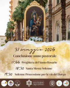 Può essere arricchita ed essere apostolicamente feconda. Si chiuderà, tutto questo percorso, con la processione, che vede la presenza della confraternita di San Cataldo, che per il terzo anno la viene a curare, portando l’immagine della Madonna, e la santa Messa che sarà celebrata da monsignor Filippo Santoro. In un momento delicato, per la città di Grottaglie, che ha registrato un atto intimidatorio avvenuto pochi giorni fa contro l’assessore Stefani, cui ho espresso la mia vicinanza, ci dice che è una città che deve essere vigile. E la comunità cristiana, che vigile deve essere per natura, è chiamata a essere capace di vedere con attenzione quanto accade, ed essere presente perché non metta radici il fenomeno malavitoso che toglierebbe libertà e prospettive.