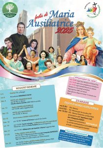 La giornata di sabato 24, solennità di Maria Ausiliatrice, sarà scandita da una serie di appuntamenti liturgici e comunitari che coinvolgeranno tutta la realtà parrocchiale: alle ore 8.30, santa messa; ore 9.30, celebrazione eucaristica dedicata agli alunni e al personale della scuola e della formazione professionale delle suore salesiane, per mettere sotto la protezione di Maria il cammino educativo e formativo dei più giovani; ore 18.30, santa messa Solenne nel cortile delle Figlie di Maria Ausiliatrice, presieduta da don Gianpaolo Roma, ispettore dei salesiani dell’Italia Meridionale; la liturgia sarà arricchita dalla partecipazione attiva dei vari gruppi della comunità educativa pastorale, in un clima di festa e preghiera. Al termine della celebrazione partirà la processione con le statue di Maria Ausiliatrice e di San Giovanni Bosco che attraverserà le strade della parrocchia, coinvolgendo fedeli, famiglie, educatori, animatori, bambini e ragazzi. Sarà un’occasione per testimoniare la fede in forma pubblica, esprimendo la devozione popolare e il forte legame con la spiritualità salesiana.