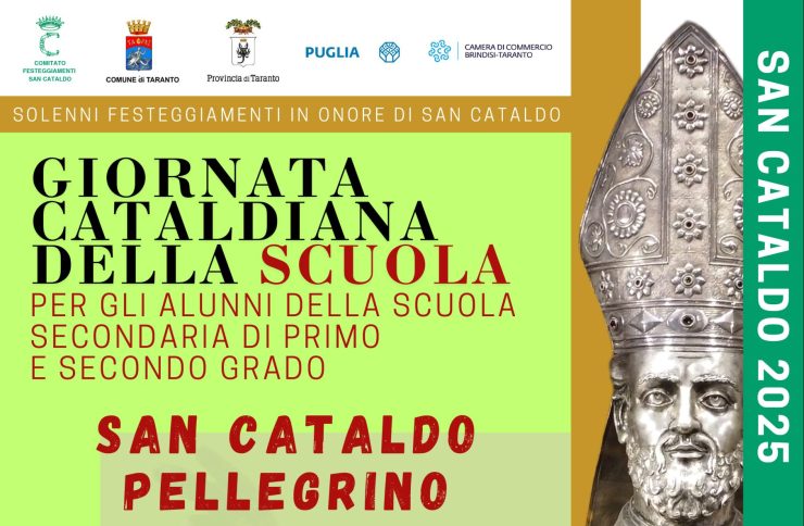 Quindi nelle giornate di martedì 6 e mercoledì 7 maggio sarà la volta della ‘Giornata cataldiana della scuola’. Martedì 6 al Museo diocesano, con inizio alle ore 9.30, l’appuntamento sarà riservato agli alunni della scuola secondaria di primo e secondo grado, in cui, dopo i saluti della direttrice del MarTa, dott.ssa Stella Falzone, e l’introduzione di mons. Emanuele Ferro, avrà luogo la performance teatrale di Giorgio Consoli sulla vita di San Cataldo; a conclusione dell’evento ai partecipanti sarà fatto dono della copia della crocetta aurea e della stampa numerata raffigurante l’arrivo del santo a Taranto, opera del disegnatore tarantino Sal Velluto.