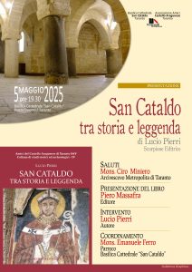 Fra le iniziative strettamente culturali, mons. Ferro ha evidenziato la mostra in corso al Mudi (chiuderà i battenti il 10 maggio) dal titolo ‘Sollemnitas’, imperniata sulle testimonianze documentarie dal XV al XX secolo per la festa di San Cataldo, allestita in collaborazione con l’Archivio di Stato, quello storico diocesano e la biblioteca arcivescovile; inoltre proprio stasera, lunedì 5, in cattedrale alle ore 19.30 sarà presentato il libro ‘San Cataldo tra storia e leggenda’ di Lucio Pierri; interverranno il prof. Piero Massafra (della casa editrice Scorpione), mons. Emanuele Ferro e l’arcivescovo mons. Ciro Miniero.