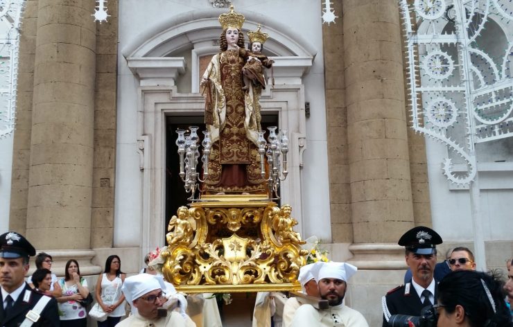 L’appuntamento è alle ore 17.30 nella chiesa di San Francesco di Paola, in via Regina Elena, per la solenne celebrazione eucaristica. Al termine muoverà il grande corteo con il simulacro della Madonna del Carmine e tutti i sodalizi per via Regina Elena, via Di Palma, piazza Immacolata, via D’Aquino fino alla chiesa del Carmine. Presteranno servizio i seguenti complessi bandistici: ‘Lemma’ di Taranto (m° Giuseppe Pisconti), ‘Grande Orchestra di fiati Santa Cecilia-Città di Taranto (m° Giuseppe Gregucci), ‘Giuseppe Chimienti-Città di Montemesola’ (m° Lorenzo De Felice).