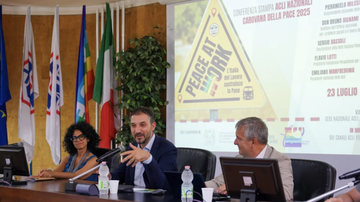 “Questa carovana è come una valanga, che sta coinvolgendo sempre di più i nostri territori, è una valanga di pace. Non la facciamo solo per gli altri, ma anche per noi stessi, per rimettere in moto una coscienza collettiva”: così il presidente nazionale delle Acli, Emiliano Manfredonia, durante la presentazione, nella sede nazionale delle Acli a Roma, della Carovana della pace ‘Peace at work – l’Italia del lavoro costruisce la pace’, la grande iniziativa itinerante delle Acli che da settembre a dicembre attraverserà tutto il paese dal sud a nord per portare nei luoghi della quotidianità – scuole, fabbriche, cooperative, cantieri, università, ospedali, teatri e campi agricoli – un messaggio concreto di disarmo, giustizia sociale e nonviolenza attiva.