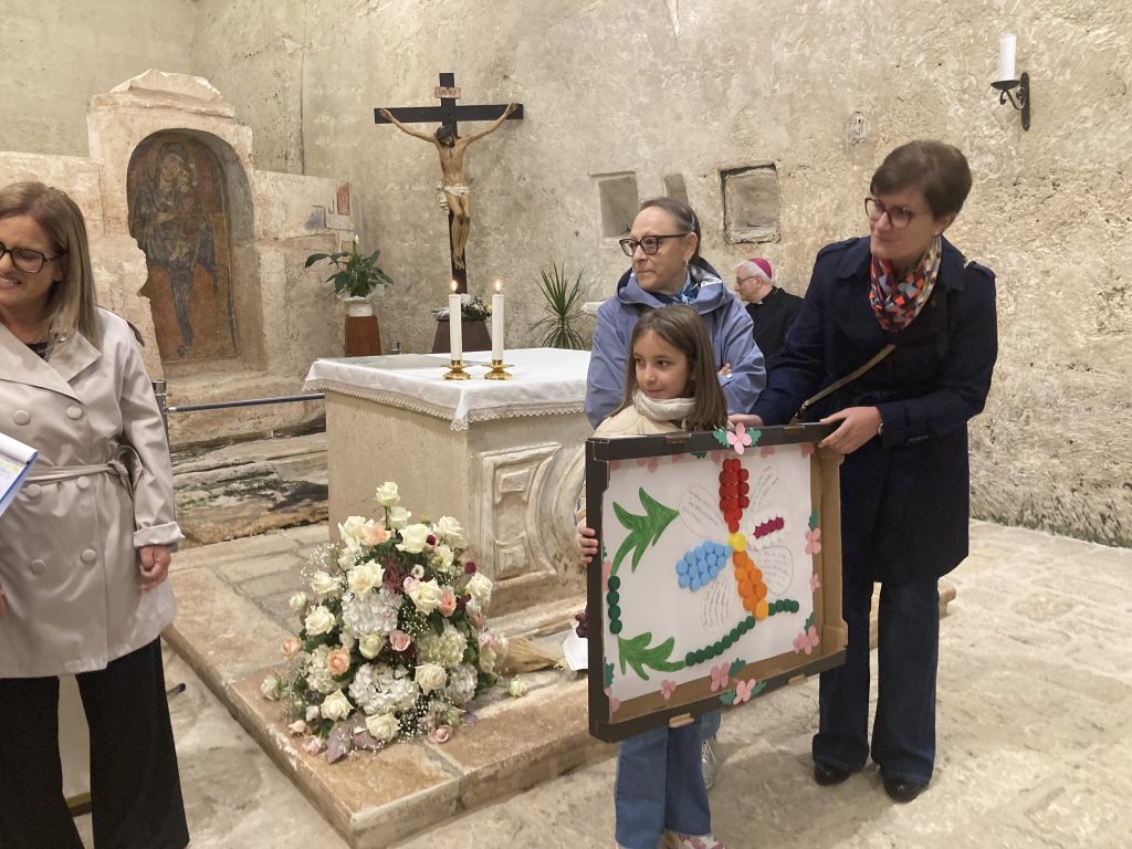 Una giornata di riflessione e ricca di emozioni in uno dei luoghi più belli del territorio jonico: il santuario rupestre della Madonna delle Grazie a San Marzano di San Giuseppe. Il concorso scolastico diocesano sulla Custodia del creato, giunto quest’anno alla decima edizione, è coinciso con il Giubileo del Creato, con i dieci anni della lettera enciclica Laudato si’ di papa Francesco sull’ecologia integrale e con gli ottocento anni dalla composizione da parte di san Francesco d’Assisi del Cantico delle creature. E così, sabato 4 ottobre, giorno in cui si celebra il santo patrono d’Italia, nel santuario giubilare, dopo un momento di preghiera, c’è la stata la premiazione delle scuole di ogni ordine e grado che hanno partecipato al concorso promosso ed organizzato dalla Commissione per la Custodia del Creato della diocesi di Taranto, dall’Ufficio diocesano Problemi sociali e Lavoro, Giustizia e Pace, Custodia del creato e dall’Ufficio diocesano Educazione, Scuola Irc, Università di Taranto. Ad entrambe le cerimonie presiedute dall’arcivescovo, mons. Ciro Miniero, hanno preso parte don Antonio Panico, responsabile dell’Ufficio diocesano Problemi sociali e Lavoro, Giustizia e Pace, Custodia del creato, e monsignor Ciro Marcello Alabrese, responsabile dell’Ufficio diocesano Educazione, Scuola Irc, Università di Taranto, i dirigenti scolastici, i docenti e gli studenti, con i loro familiari, delle scuole premiate e numerose personalità della società civile e delle professioni che hanno consegnato il premio agli studenti. Quest’anno c’è stata una sezione speciale del premio (premio 800 euro), che ha visto protagonisti i bambini ed i ragazzi, con i loro familiari, dell’Associazione genitori di Taranto Oncoematologia Ets Odv che sono stati premiati per l’elaborato ‘La speranza non delude’.