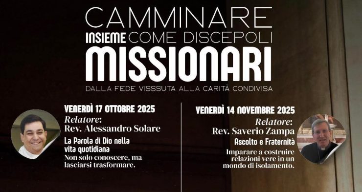 ‘Camminare insieme come discepoli missionari: dalla fede vissuta alla carità condivisa’ è il tema della serie di incontri che segneranno il cammino di catechesi comunitaria alla parrocchia del Sacro Cuore, in via Dante, a Taranto. “Ciò costituirà un’occasione preziosa per crescere insieme nella fede e riscoprire la bellezza di una comunità che ascolta, prega, si forma e serve – spiega il parroco don Francesco Venuto – Quest’anno vogliamo lasciarci guidare da u sogno semplice ma grande: vivere la fede in modo concreto e gioioso, camminare insieme come fratelli e tradurre i Vangelo on gesti di carità e speranza. Ogni incontro sarà un passo per diventare davvero Chiesa in uscita, discepoli che camminano con il cuore acceso e mani pronte a servire”.