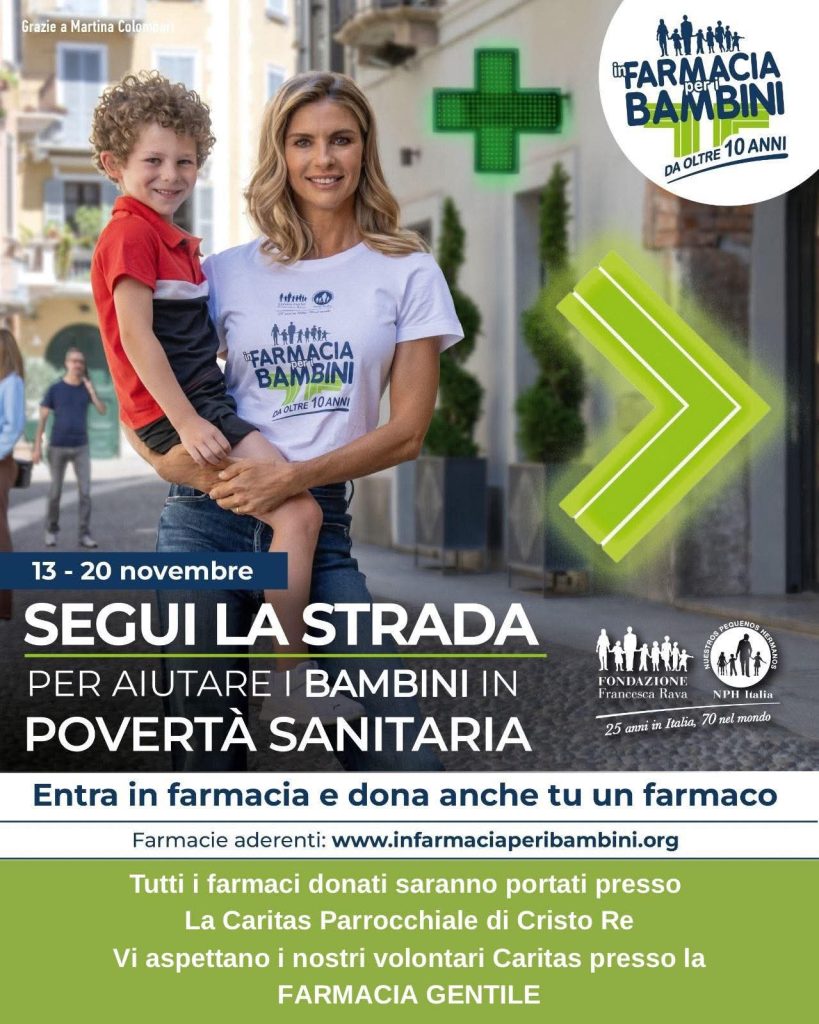 ‘In farmacia per i bambini: uniti per un futuro migliore’ s’intitola l’iniziata di solidarietà messa in atto a Martina Franca dalla parrocchia di Cristo Re dei frati per la raccolta di farmaci destinati ai bambini bisognosi. Tutti i giorni da giovedì 13 al 20 novembre gli operatori Caritas raccoglieranno le donazioni nell’esercizio in via Donizetti 71 che successivamente saranno portati in parrocchia. “Unitevi a noi in questa missione di solidarietà – l’invito degli organizzatori –. Ogni piccolo gesto può fare la differenza. Insieme possiamo dare a ogni bambino la possibilità di un futuro migliore”.