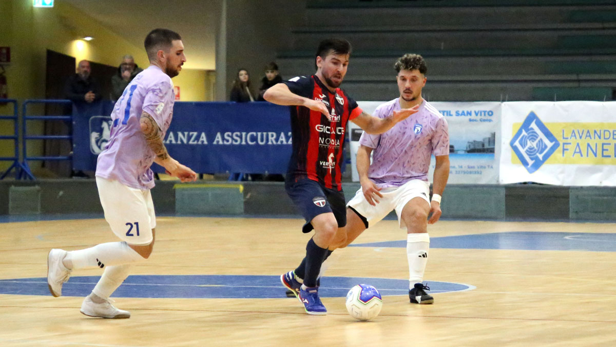 Quindici punti in sette giornate: cinque vittorie e due sconfitte. Con questi numeri la New Taranto si preparava a vivere una nuova entusiasmante sfida nell’ottava giornata d’andata del campionato di serie A2 Élite di futsal. L’avversario, l’Academy Pescara, aveva gli stessi punti in classifica, condividendo anche insieme alla Lazio la seconda posizione del girone B. L’ottimo inizio di campionato degli ionici aveva subito una battuta d’arresto nella settima giornata sul campo del Benevento. Una sconfitta di misura, davvero minima in uno sport come il calcio a 5 (1-0), contro la capolista imbattuta, che non poteva abbattere gli uomini allenati da Angelo Bommino. La reazione infatti c’è stata. E il Pescara domato per 3-2 tra le mura amiche del Palafiom, al termine di una partita combattuta, con le emozioni tutte concentrate nella seconda parte di gara. Così la seconda posizione è stata consolidata. E la distanza dalla vetta accorciata, a 3 lunghezze – complice la sconfitta del Benevento in casa del Cadi Antincendi Futura.